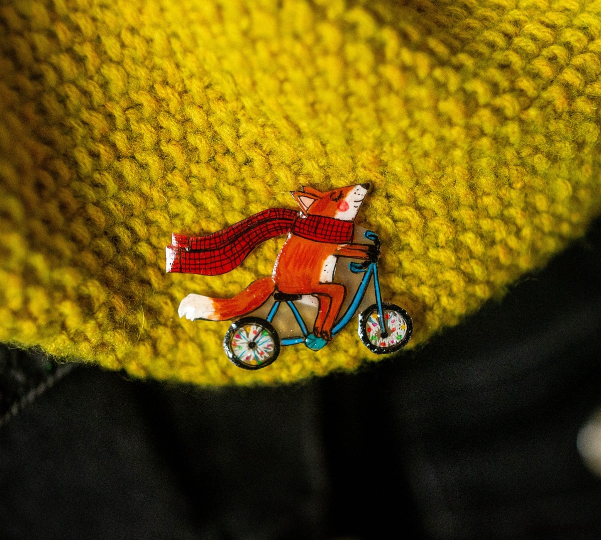 Poznaj Andrzeja – lisa z misją! Zawinął się w szalik, wskoczył na rower i jedzie prosto w stronę Twojej kurtki, torby albo plecaka. Nie spieszy się – ważne, że stylowo! Zapakowany w elegancki tekturowy kartonik, bo nawet lis na rowerze lubi mieć klasę.