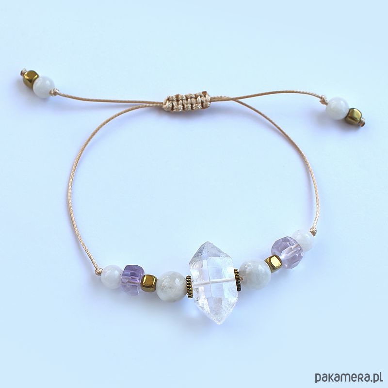 Energetyczna bransoletka wykonana techniką shamballa z diamentem herkimer, kamieniem księżycowym, fasetowanym ametrynem i hematytami pozłacanymi 24k złotem. Wspierająca równowagę czakr. Oczyszczona, zregenerowana, napełniona energią czystego światła o najwyższej wibracji. ❤
