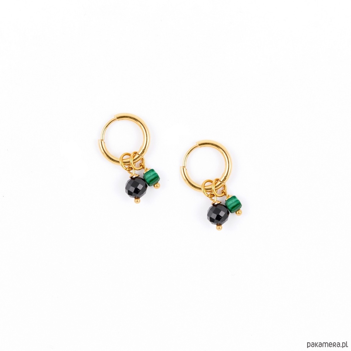 Wymiary: Kamienie: Turmalin/MalachitWielkość kamieni: 6mm/3mmWielkość kół: 12mm x 2mm lub 9mm x 2mmMateriał: antyalergiczna stal szlachetna