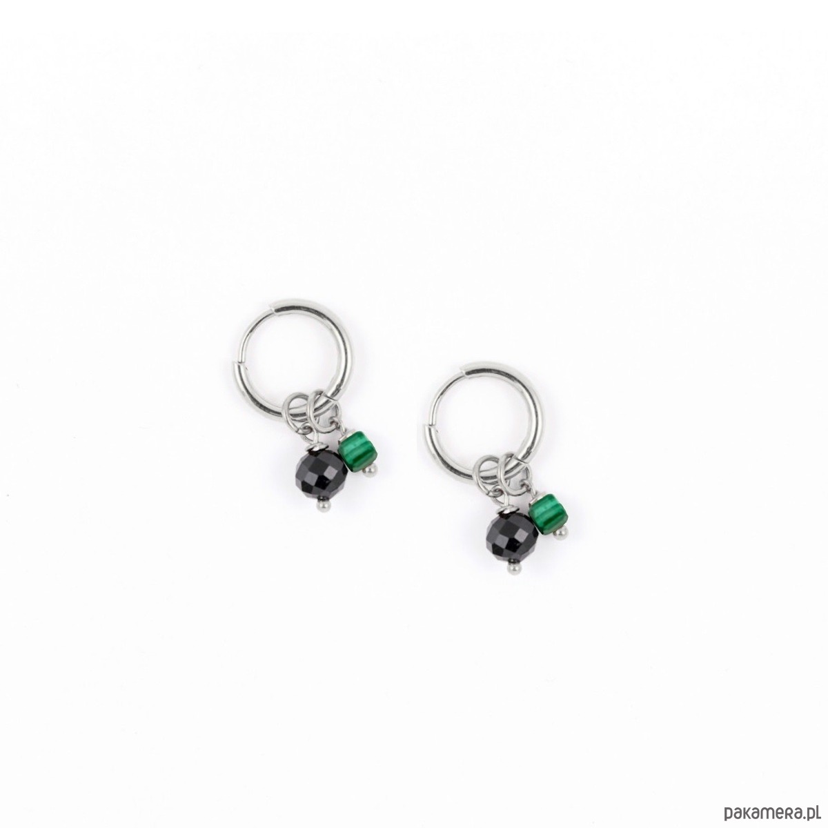 Wymiary: Kamienie: Turmalin/MalachitWielkość kamieni: 6mm/3mmWielkość kół: 12mm x 2mm lub 9mm x 2mmMateriał: antyalergiczna stal szlachetna