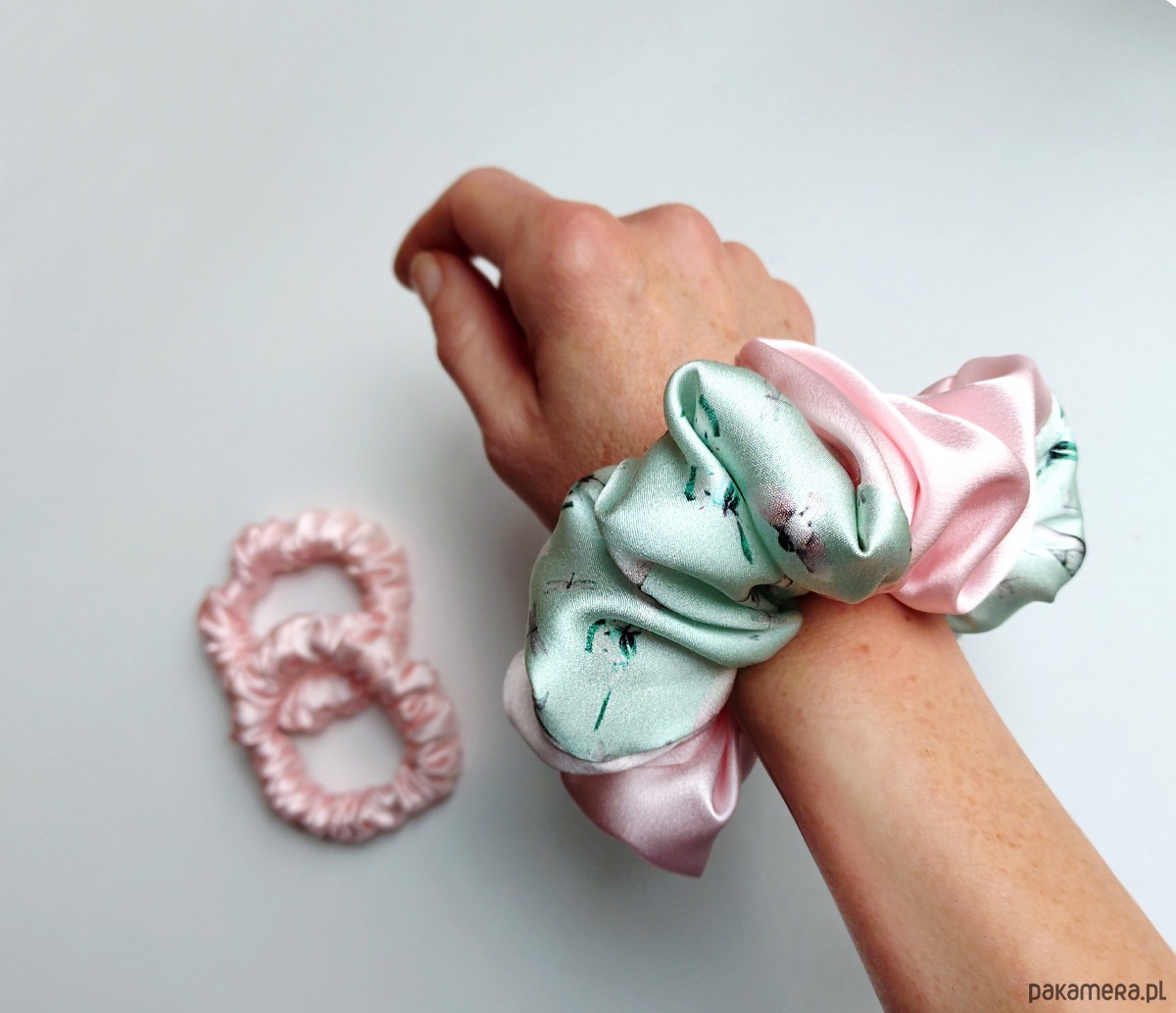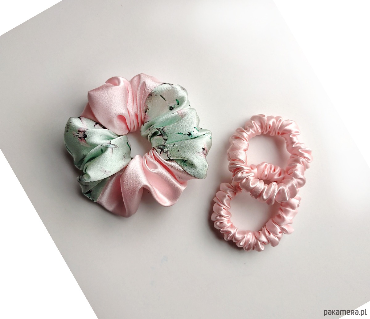Róż i mięta - zestaw jedwabnych scrunchie
