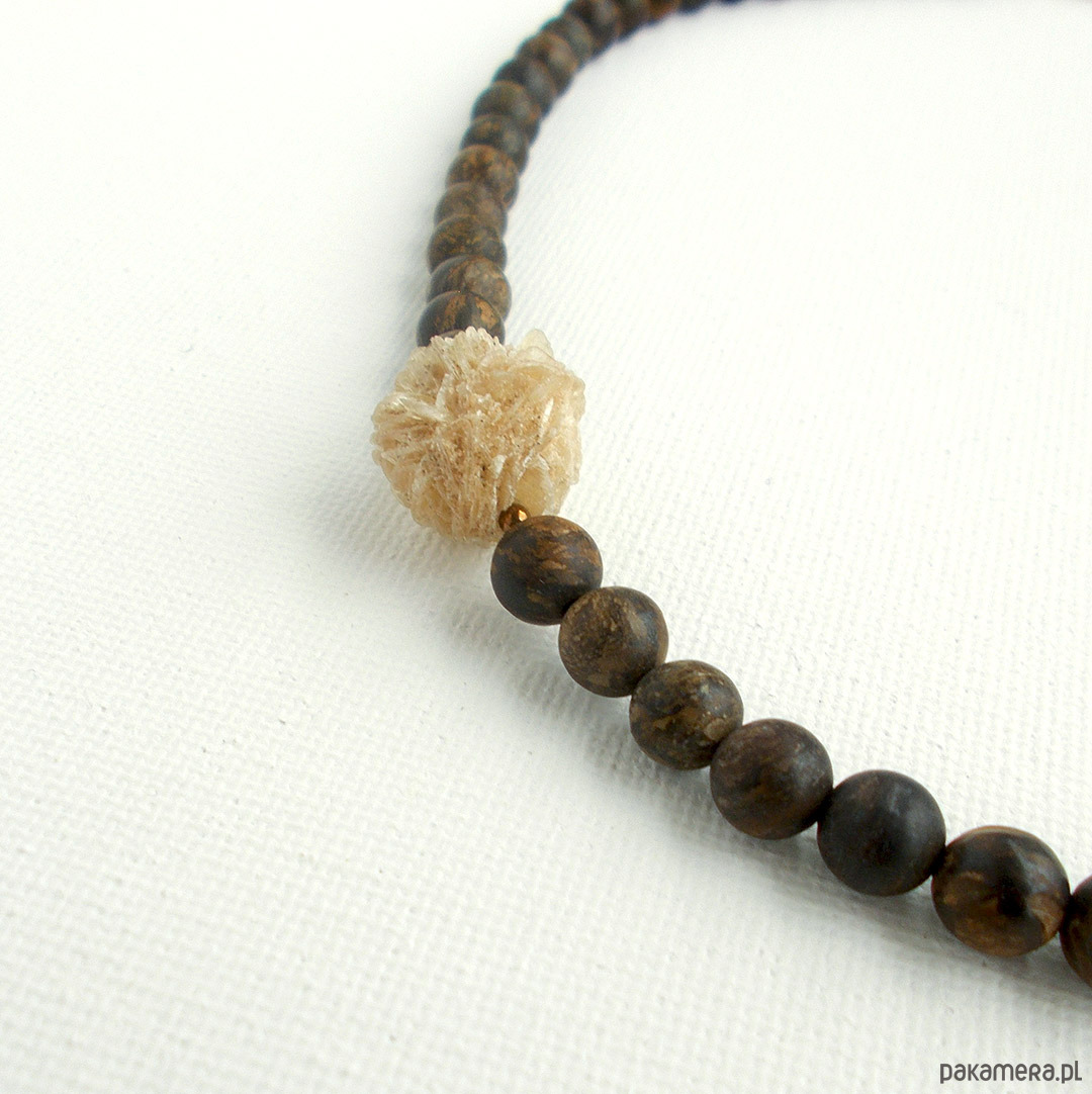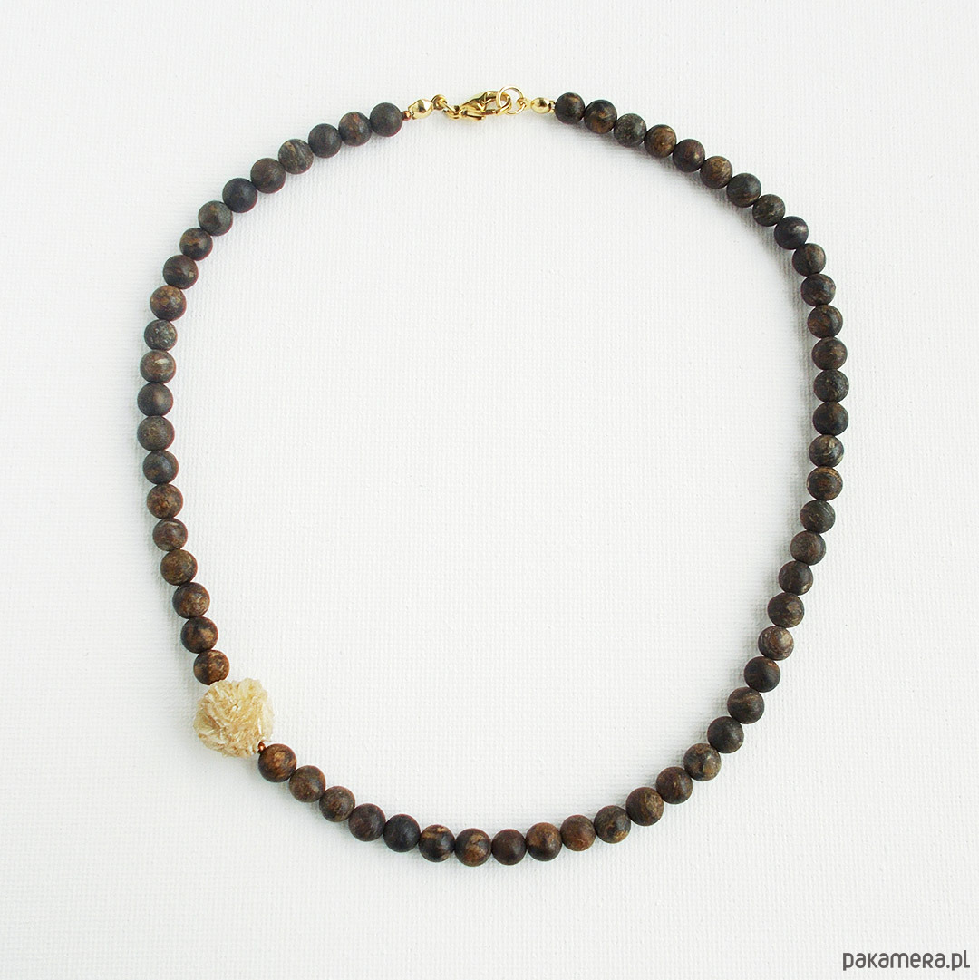 Naszyjnik z kamieniami bronzytu i asymetrycznie umieszczonym kamieniem róży pustyni