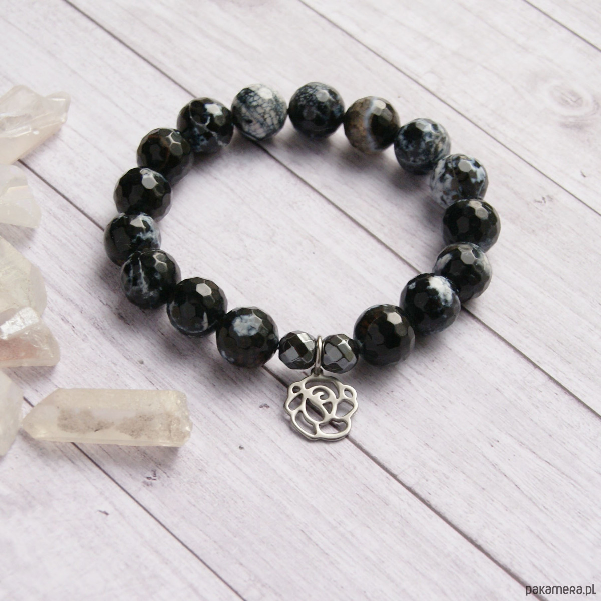 Róża : stal szlachetna : agat czarny 12mm