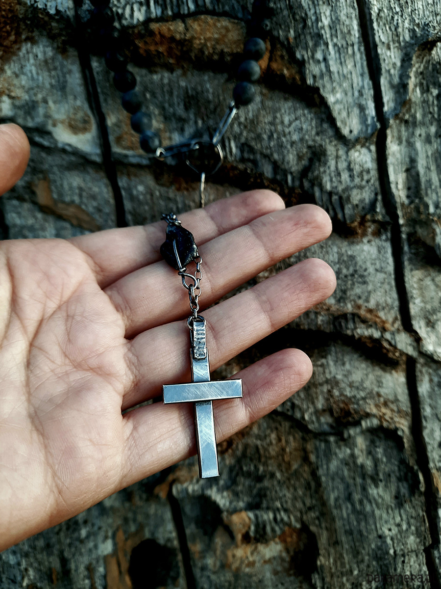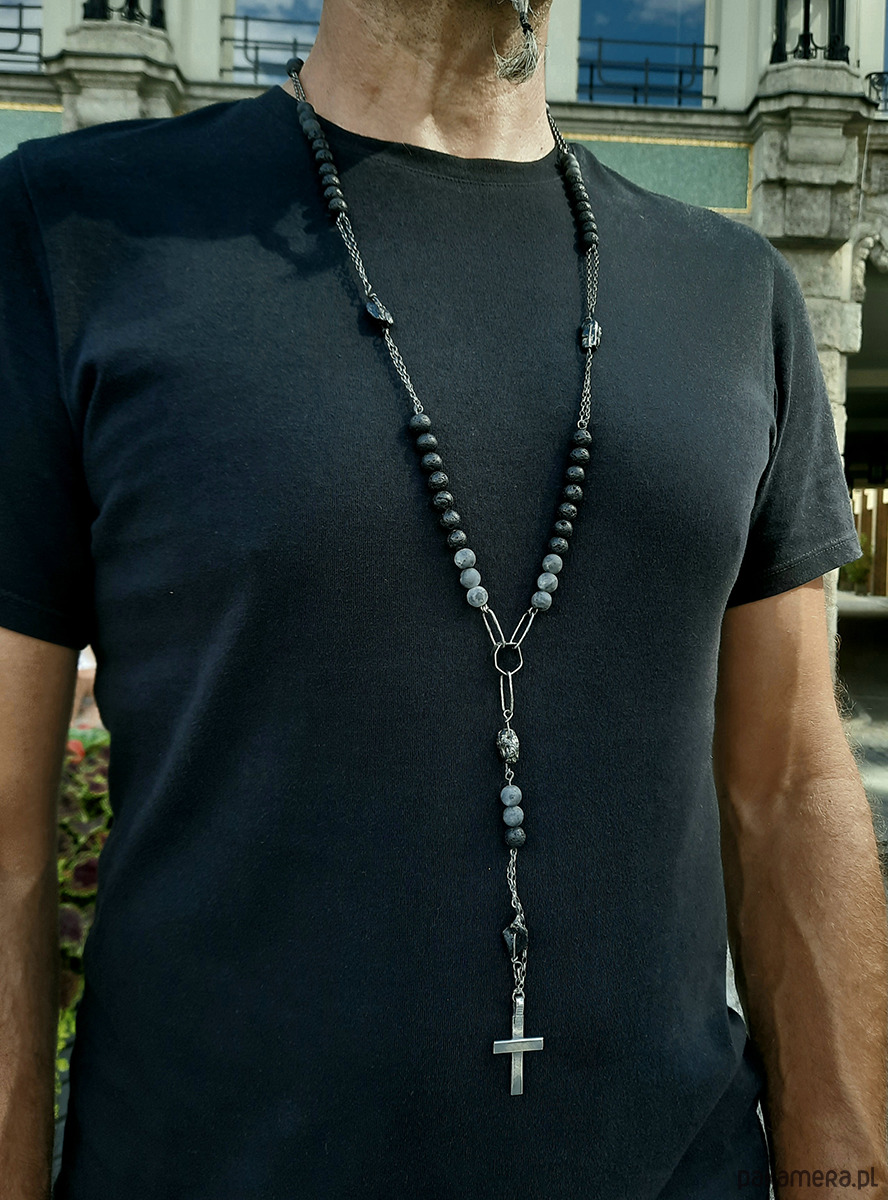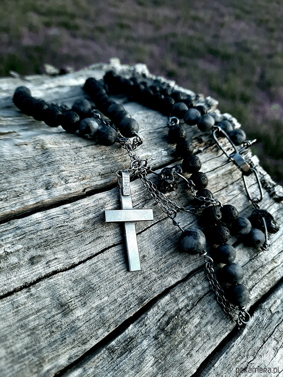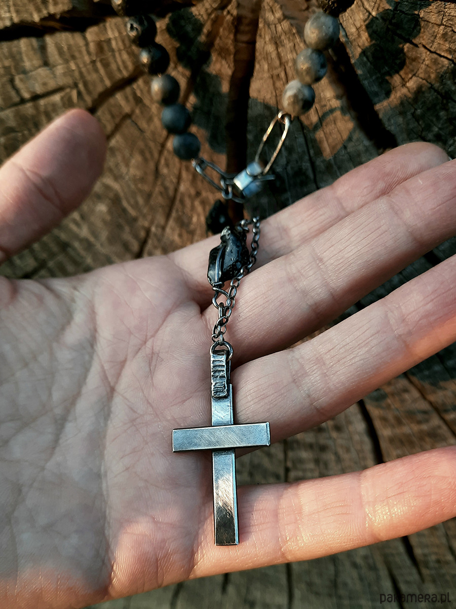 Naszyjnik wykonałam własnoręcznie ze srebra próby 925 oraz lawy wulkanicznej, naturanlnego larvikitu prosto z Norwegii, a także tektytu.