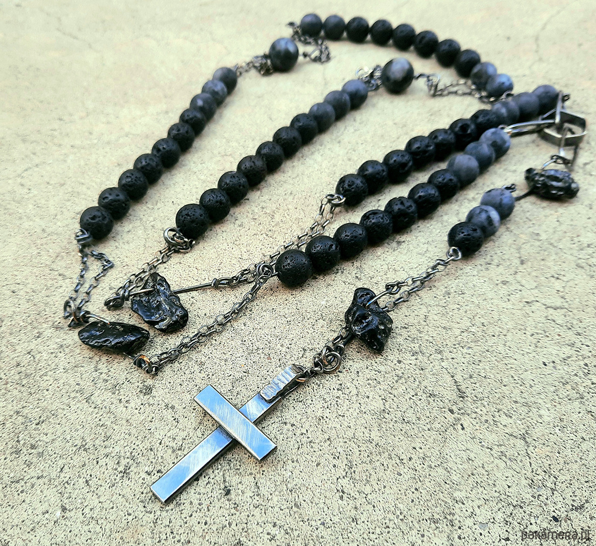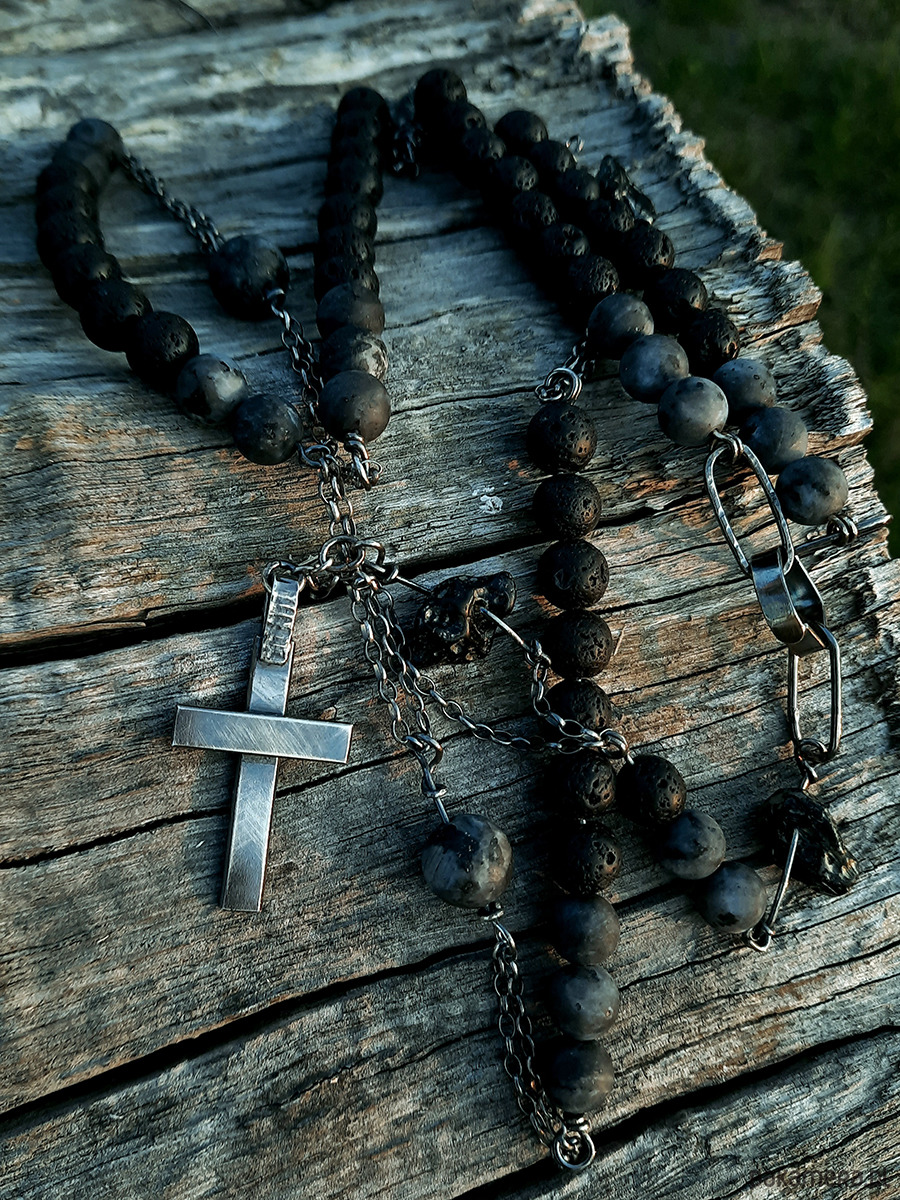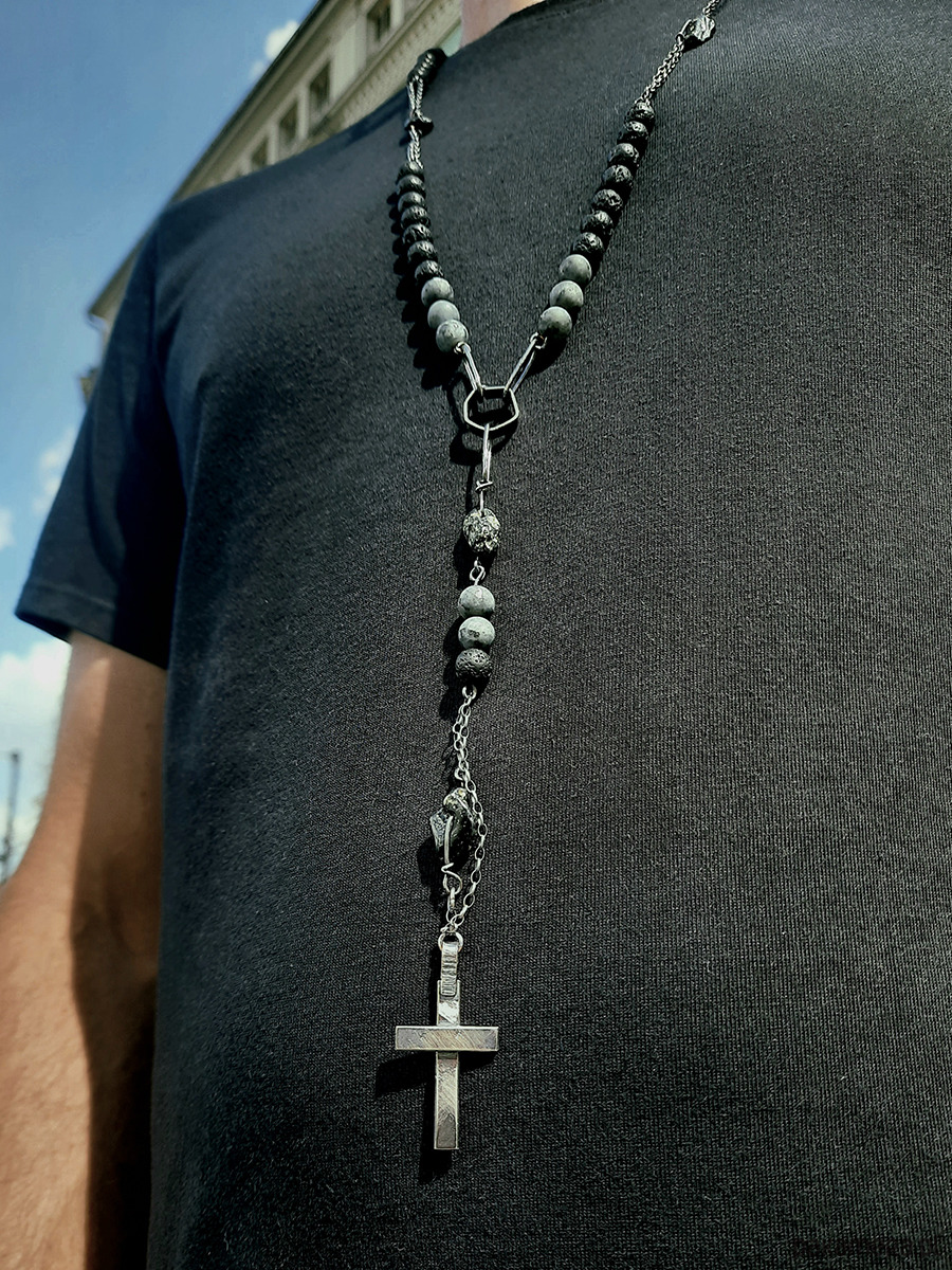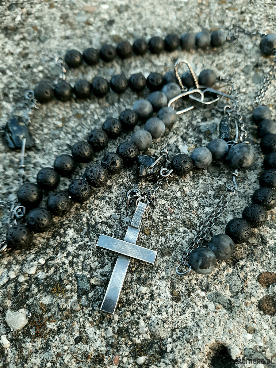 Naszyjnik wykonałam własnoręcznie ze srebra próby 925 oraz lawy wulkanicznej, naturanlnego larvikitu prosto z Norwegii, a także tektytu.