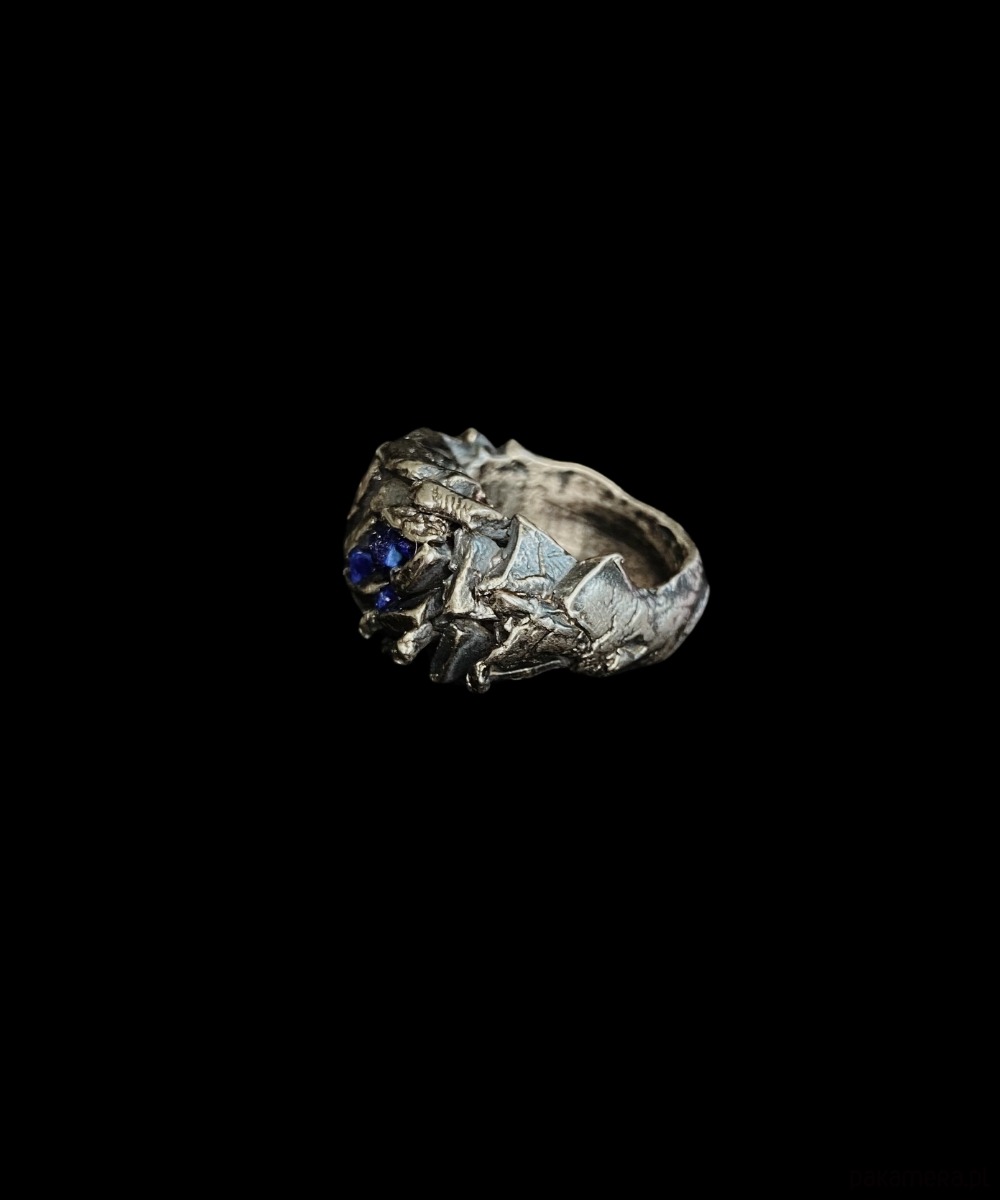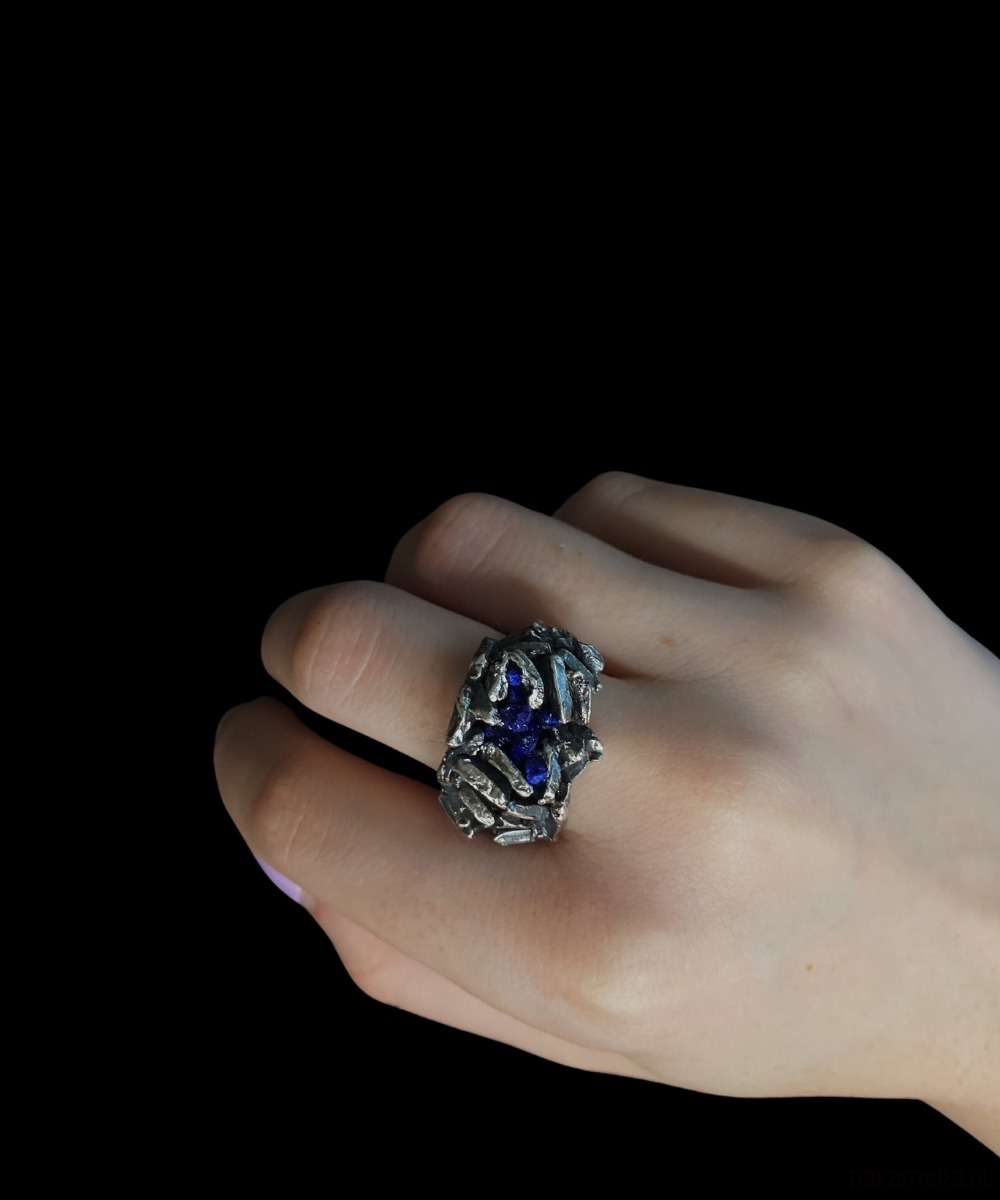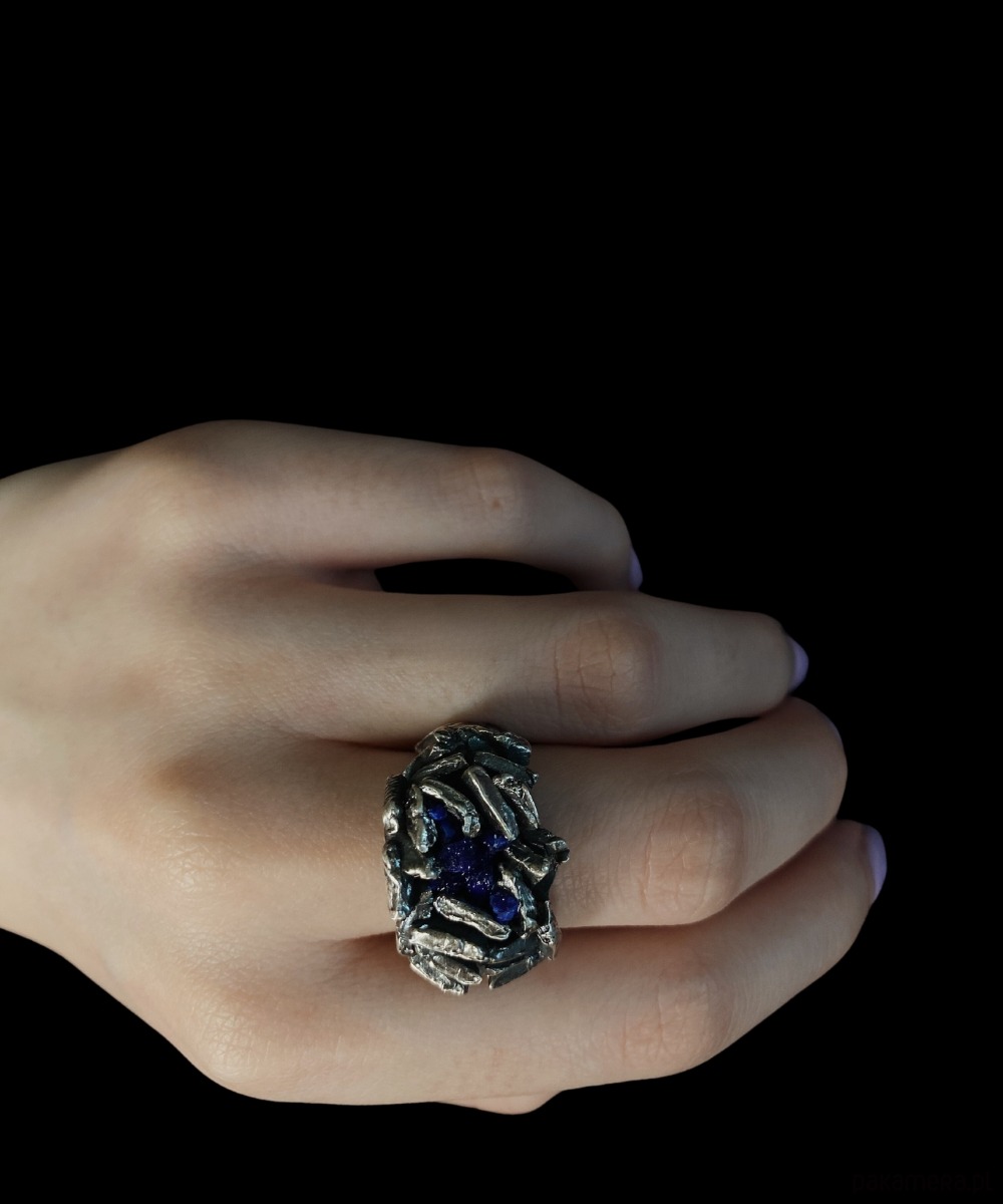 Ring made of the highest quality Art Clay Silver 999 with azurite.