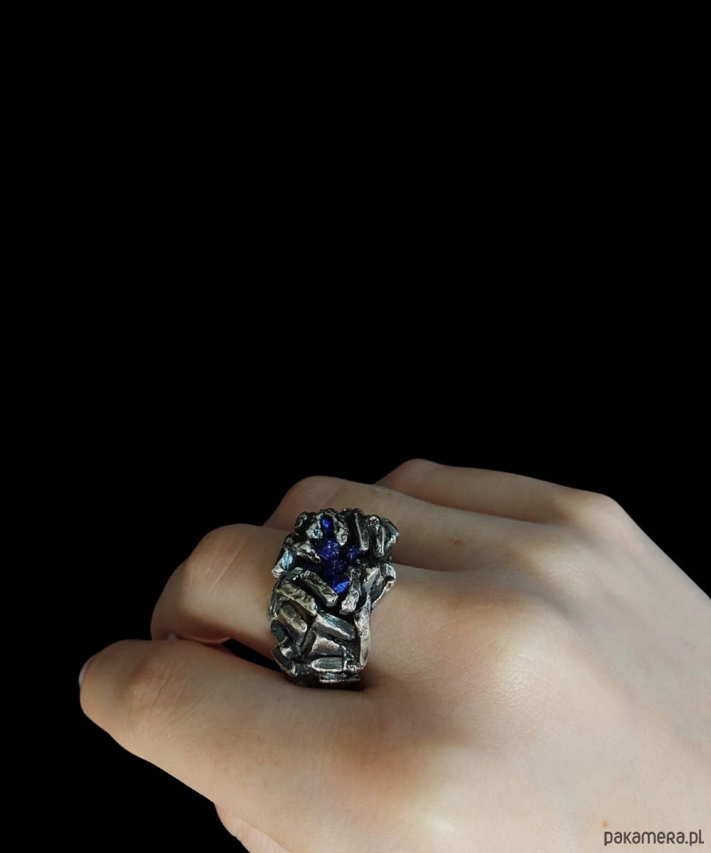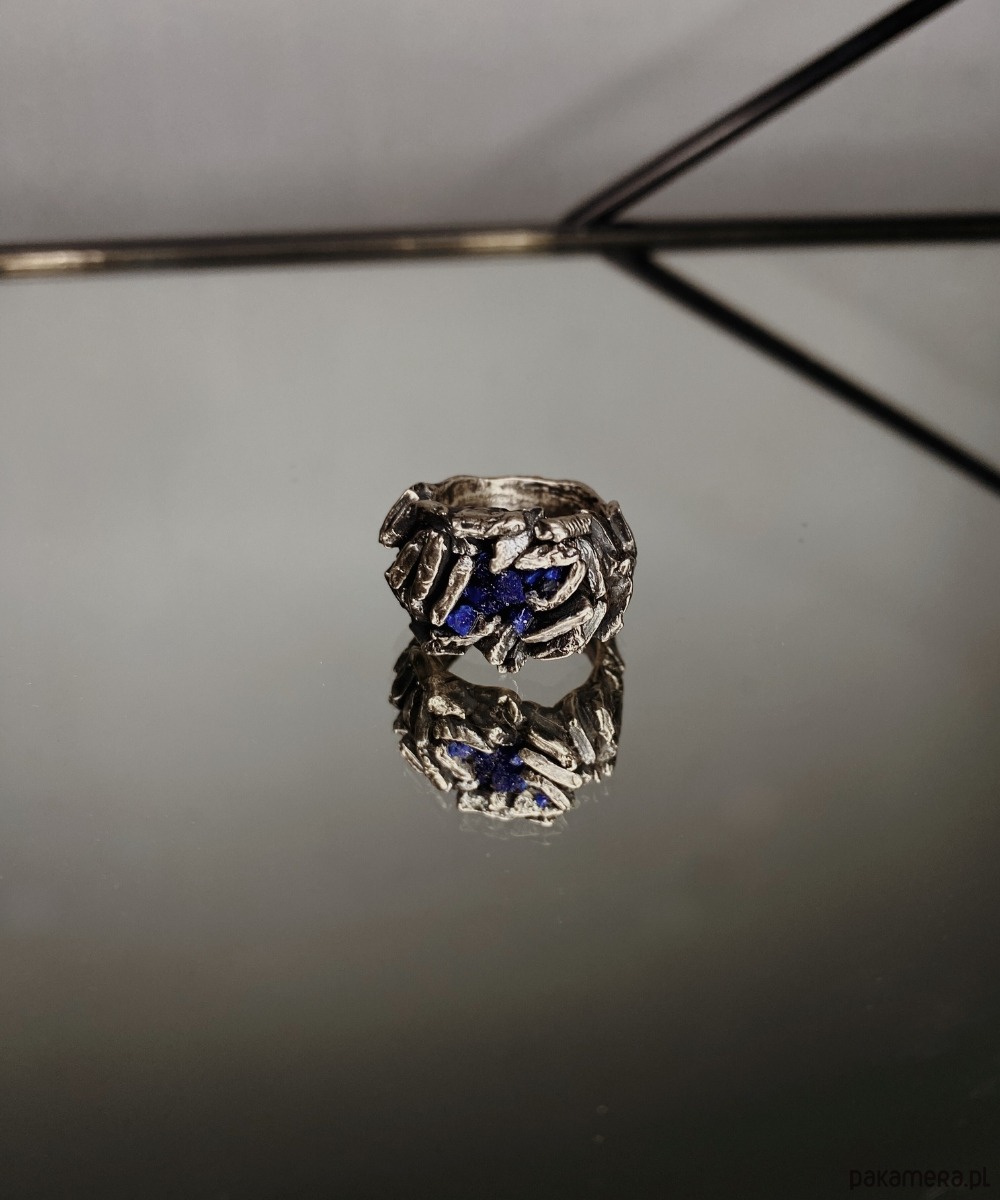 Pierścień wykonany ze srebra najwyższej próby Art Clay Silver 999 z azurytem.