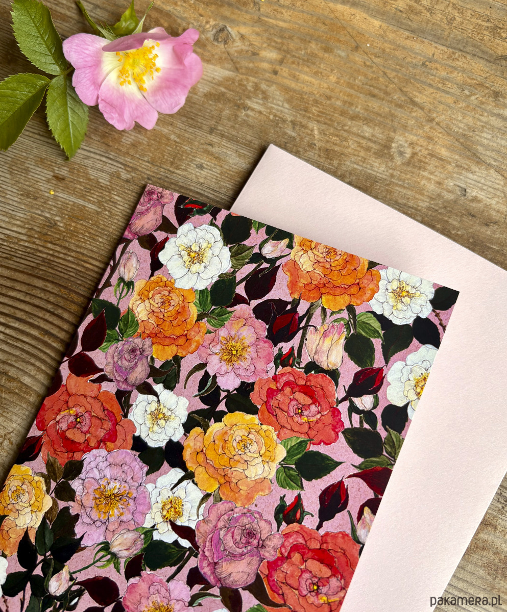Róże, wydruk autorskiej ilustracji inspirowanej światem rodzimej flory oraz estetyką vintage.