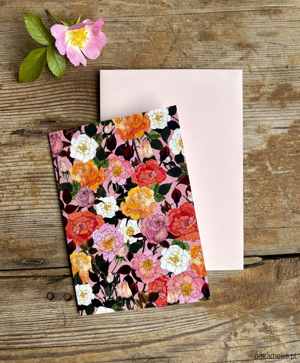 Róże, wydruk autorskiej ilustracji inspirowanej światem rodzimej flory oraz estetyką vintage.