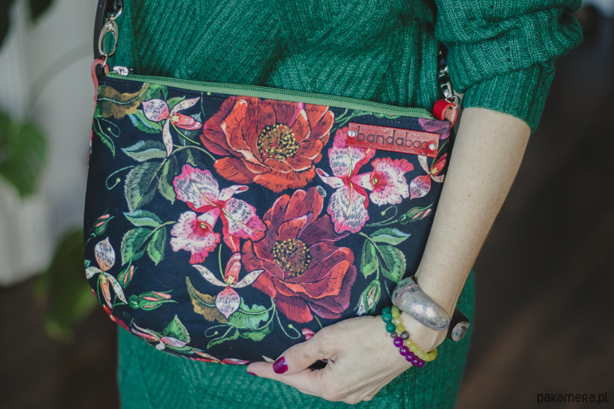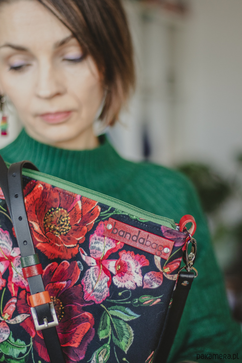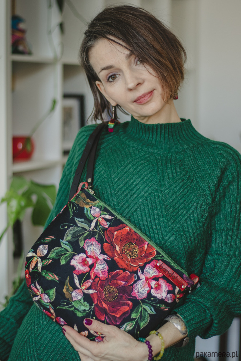 RÓŻE to ręcznie robiona torebka. Wykonana z solidnej, kolorowej, welurowej tkaniny.