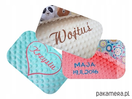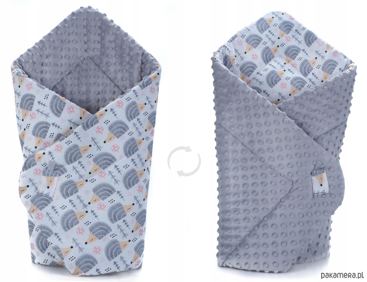 Wykonany jest z wysokiej jakości wzorzystej tkaniny,natomiast drugą stronę stanowi niezwykle miękka i przyjemna dla skóry tkanina minky o gramaturze 380g. Zapinany jest na solidny rzep zapewniająca bezpieczeństwo użytkowania.