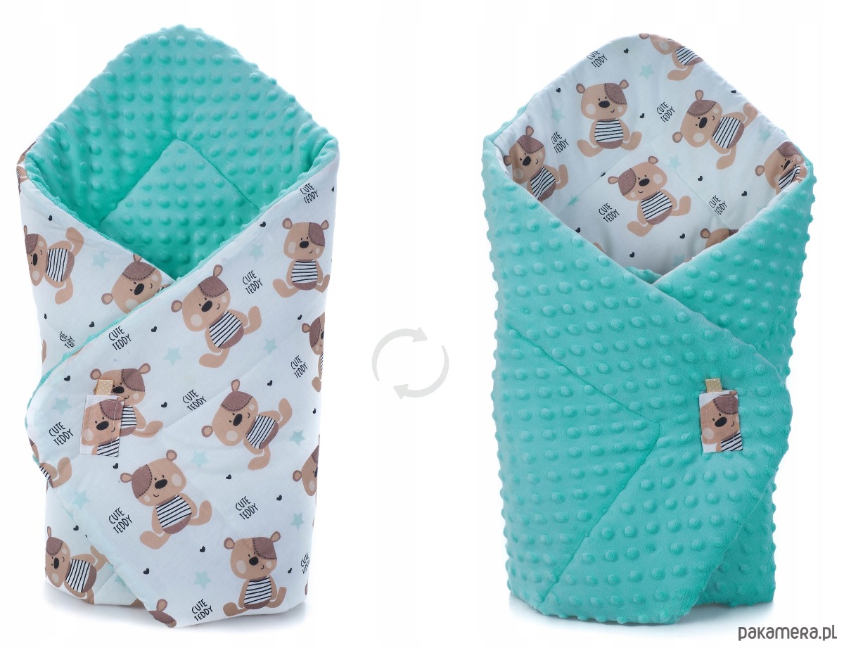 Wykonany jest z wysokiej jakości wzorzystej tkaniny,natomiast drugą stronę stanowi niezwykle miękka i przyjemna dla skóry tkanina minky o gramaturze 380g. Zapinany jest na solidny rzep zapewniająca bezpieczeństwo użytkowania.