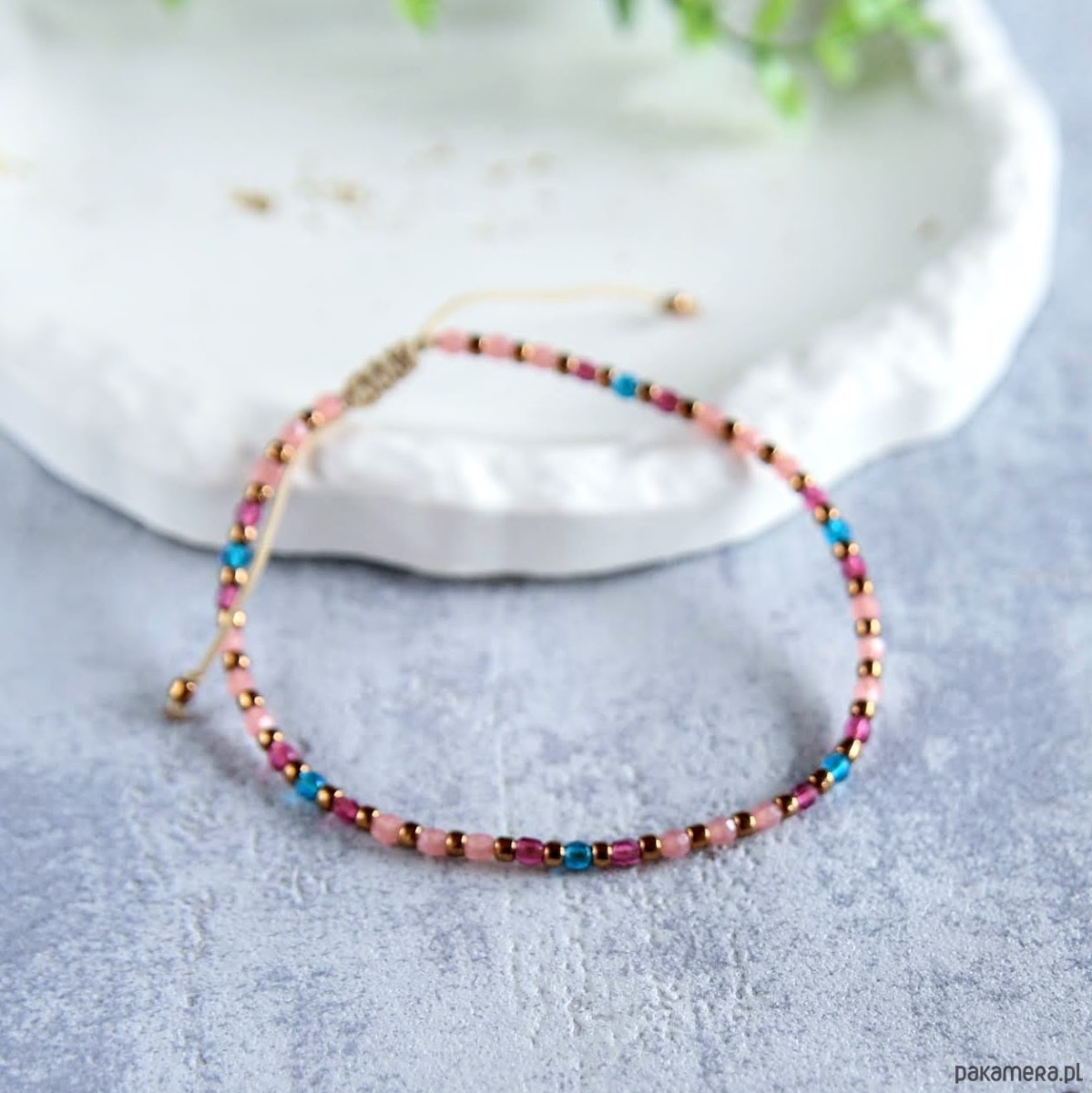 Bazą bransoletki jest bardzo mocny sznurek z wiązaniem, które umożliwia regulowanie obwodu.
