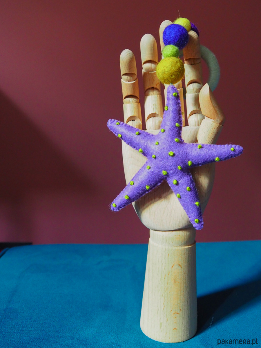 -wielkość rozgwiazdy: ok. 13 cm x 12 cm, pomponowy sznur z gryzakiem o długości 14 cm
