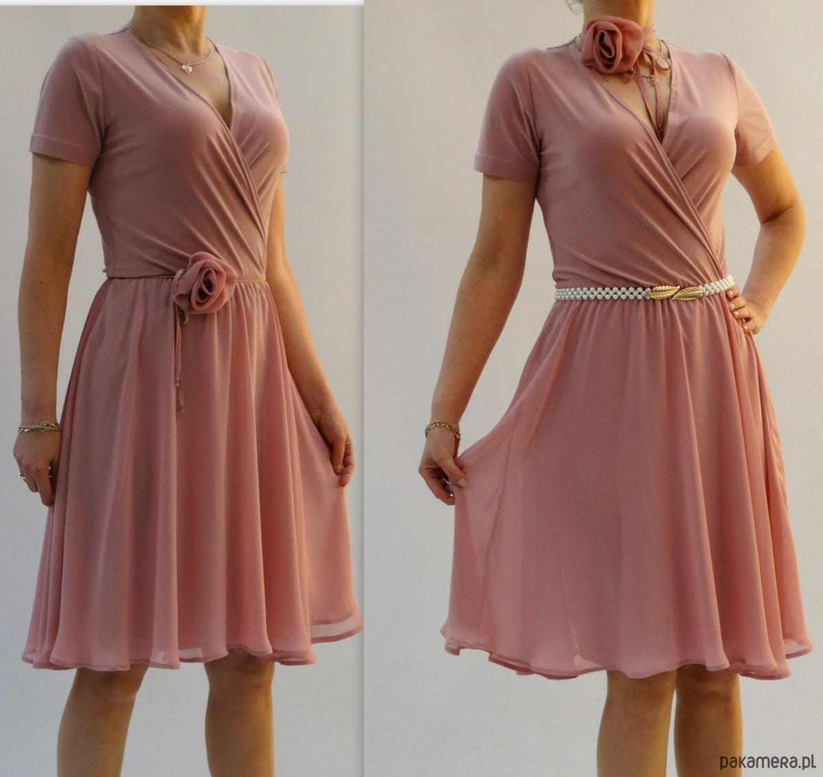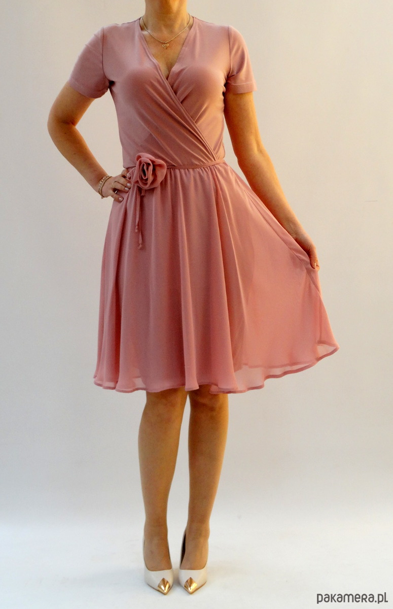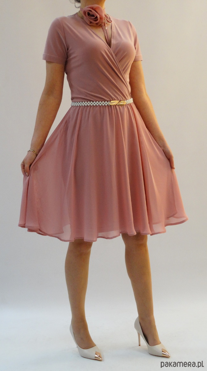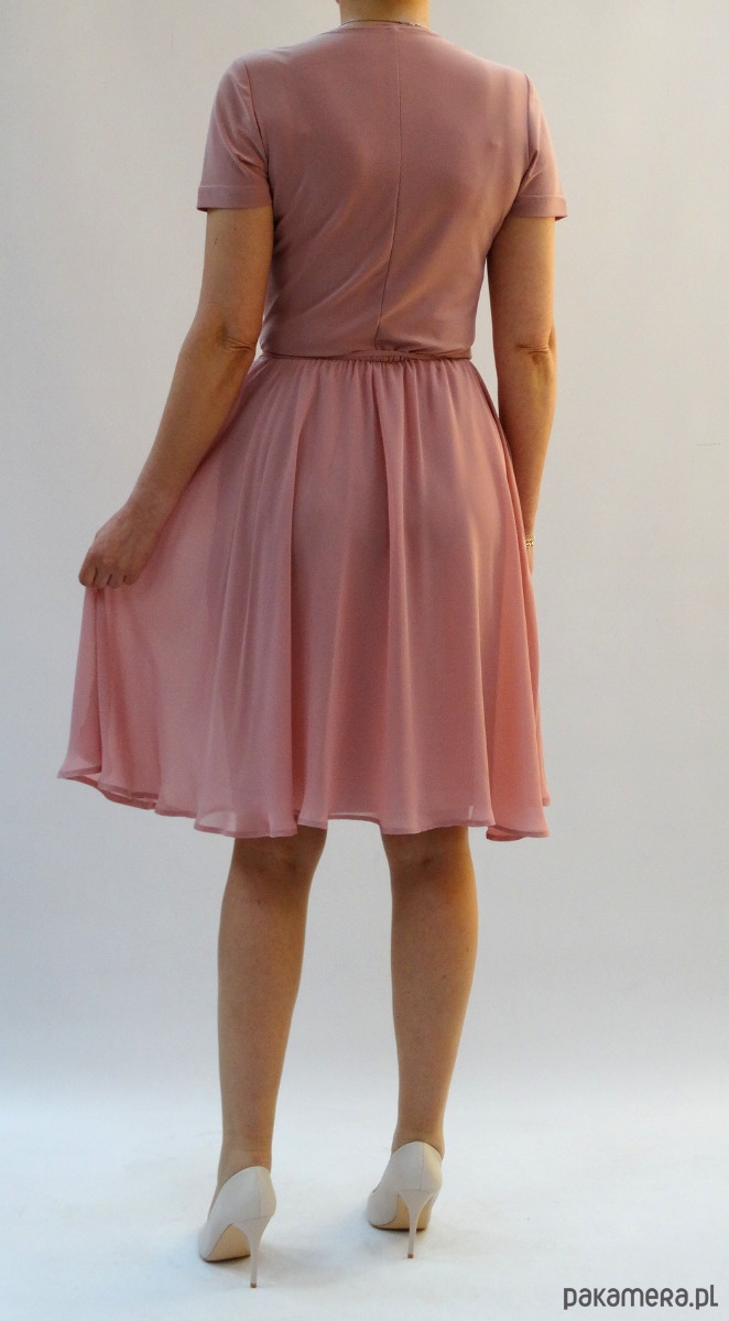 ELEGANCKA ROZKLOSZOWANA SUKIENKA Z SZYFONEM
