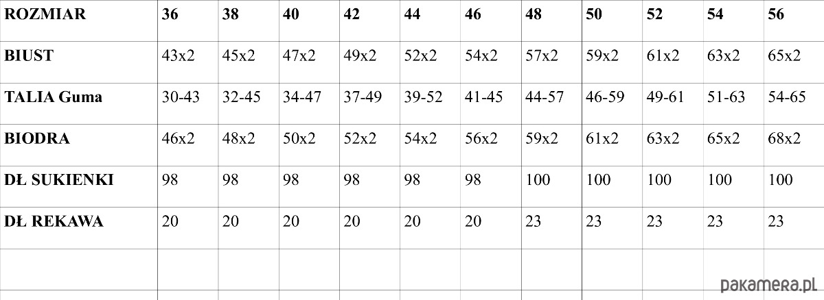 WYMIARY SUKIENKI MIERZONE NA PŁASKO PODANE W TABELI W GALERII ZDJĘĆ