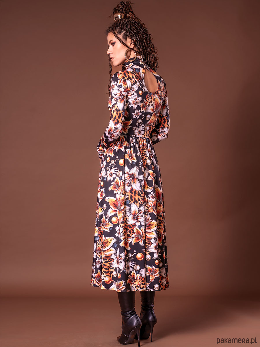 Rozkloszowana sukienka z golfem