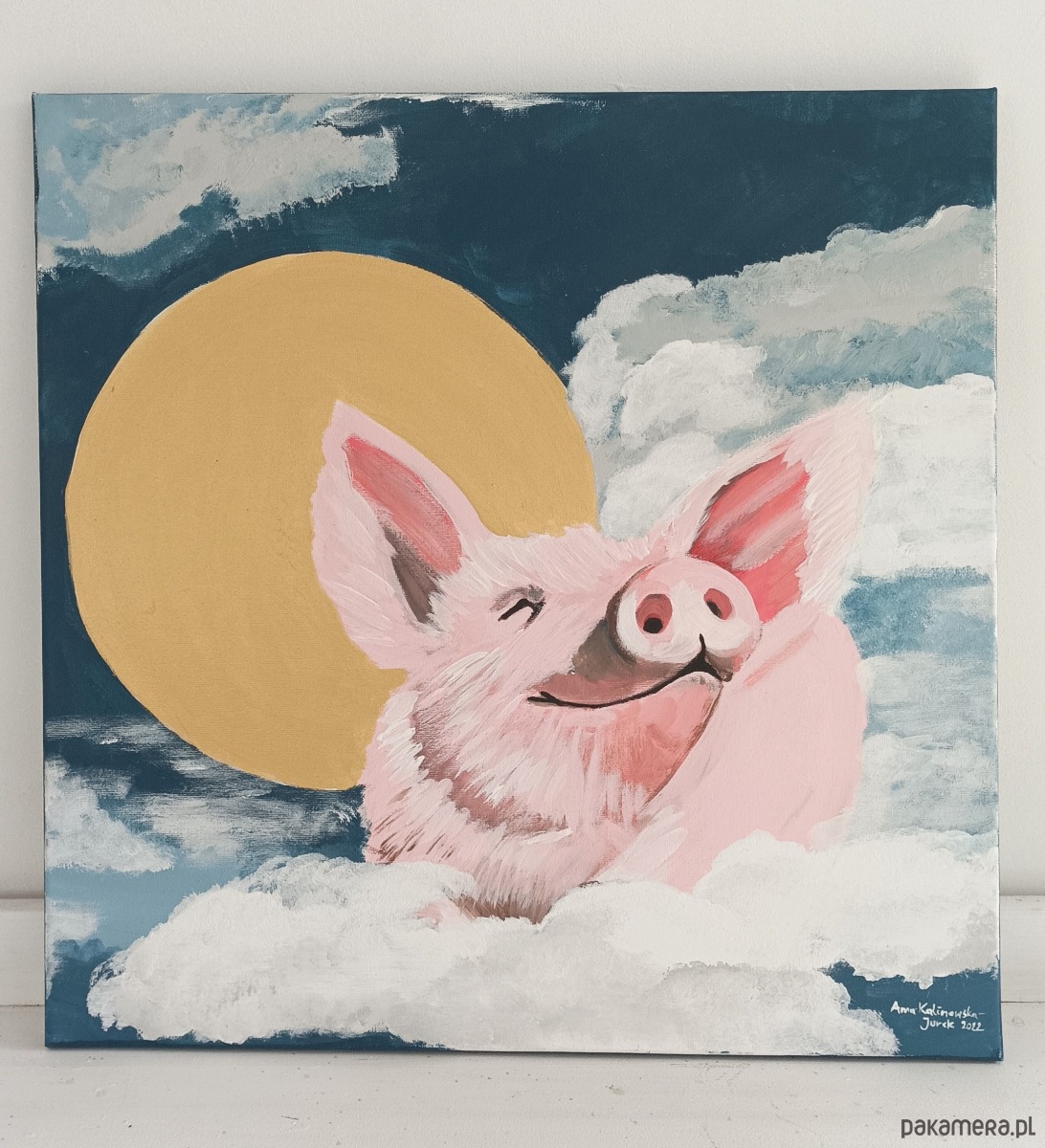 Obraz o wymiarach 50x50cm namalowany farbami akrylowymi na płótnie.