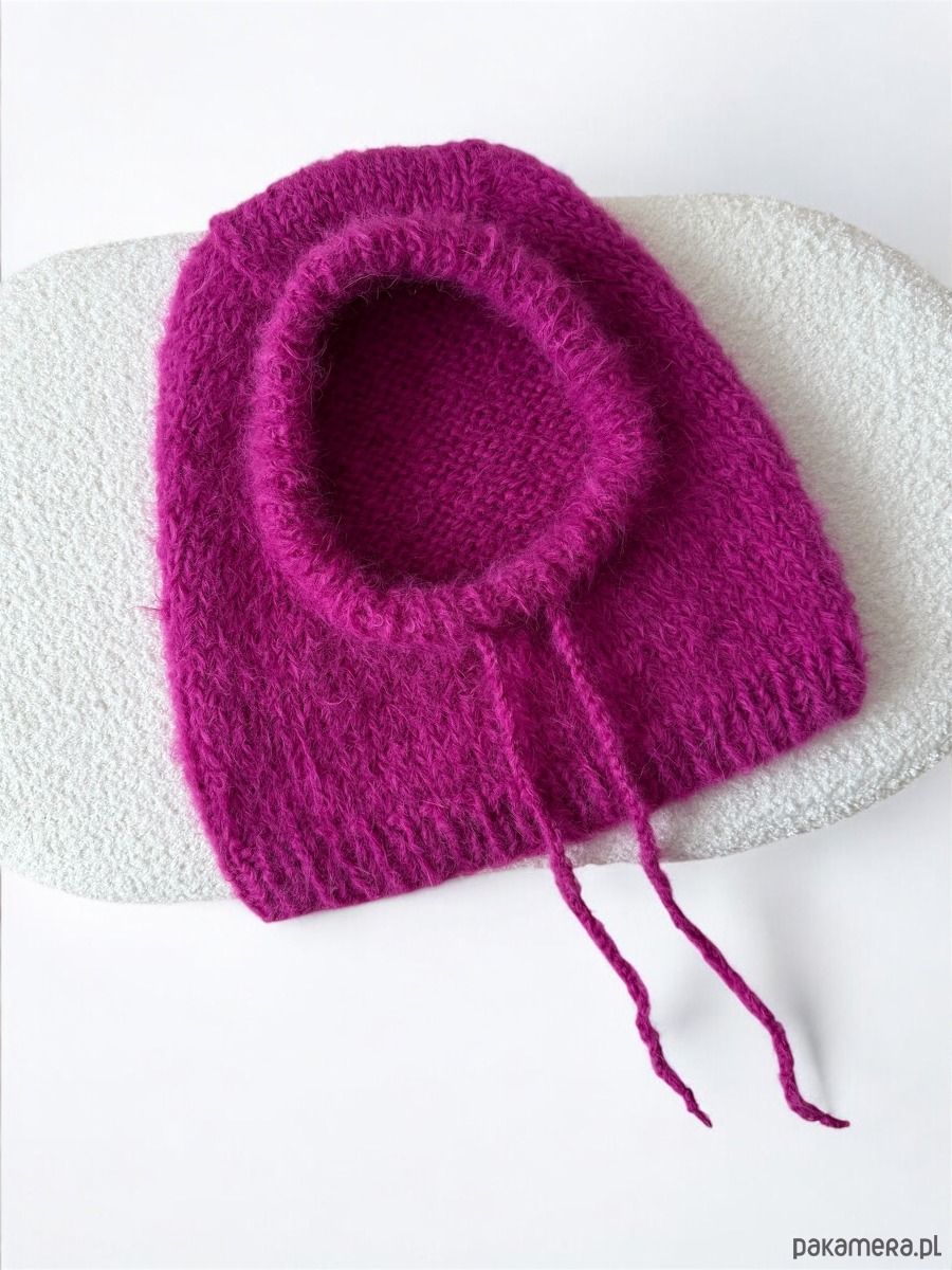Balaclava, kapturek, kominiarka. Wykonana z dwóch nitek włóczki o składzie 74% Suri alpaka 22% wełna merino i 4% nylon Grubsza, ciepla, model luźniejszy - nie zrujnuje Twojej fryzury i makijażu 🫶🏼