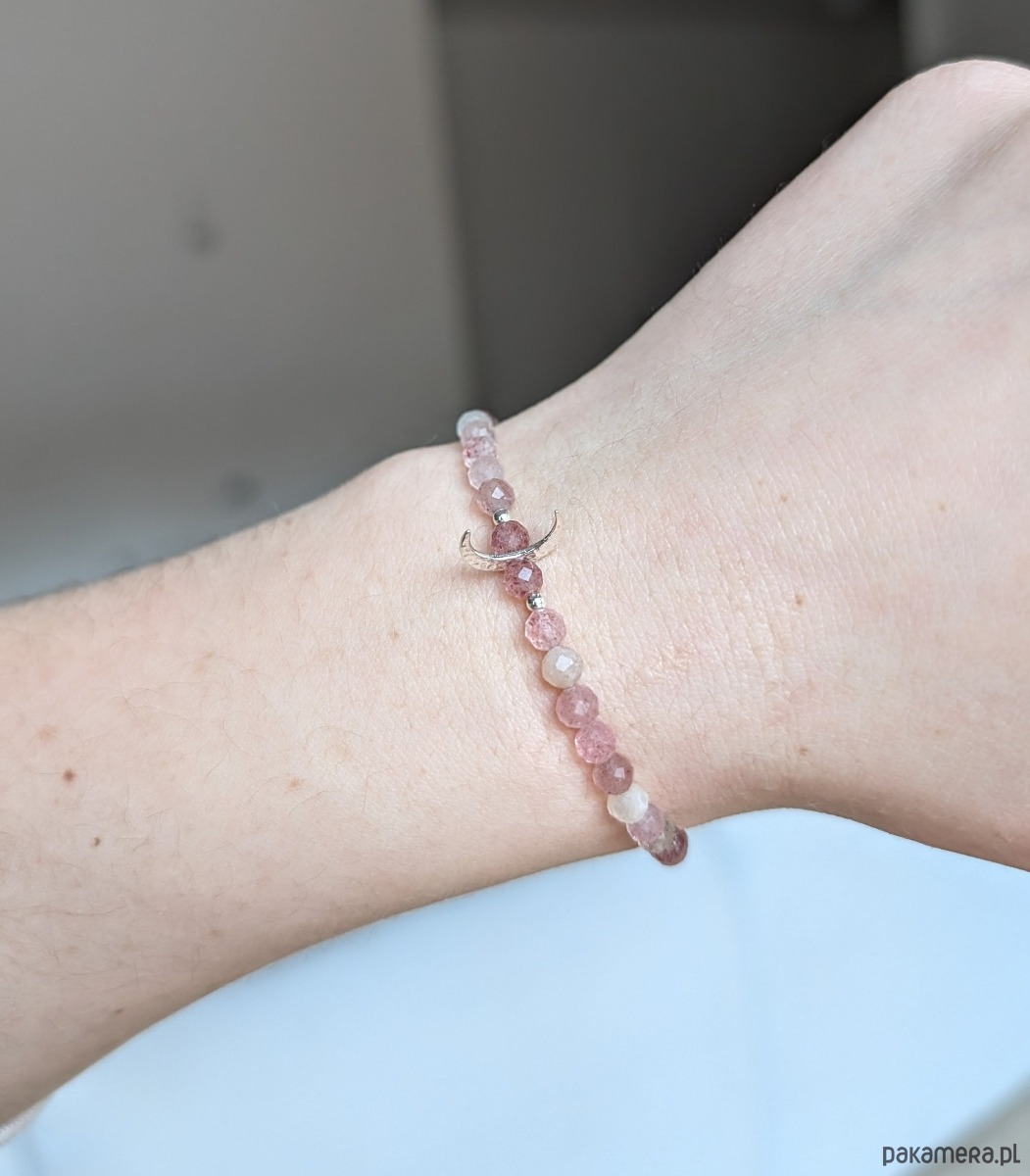 Różowa bransoletka - kwarc truskawkowy i srebrny księżyc