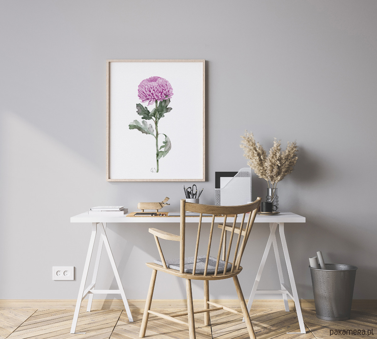 Delikatna, różowa paleta chryzantemy wnosi ciepło i kobiecość. Doskonała do wnętrz skandynawskich, romantic i boho. Piękna dekoracja salonu, sypialni lub gabinetu. Elegancki pomysł na prezent — urodziny, imieniny, parapetówka, Dzień Matki.