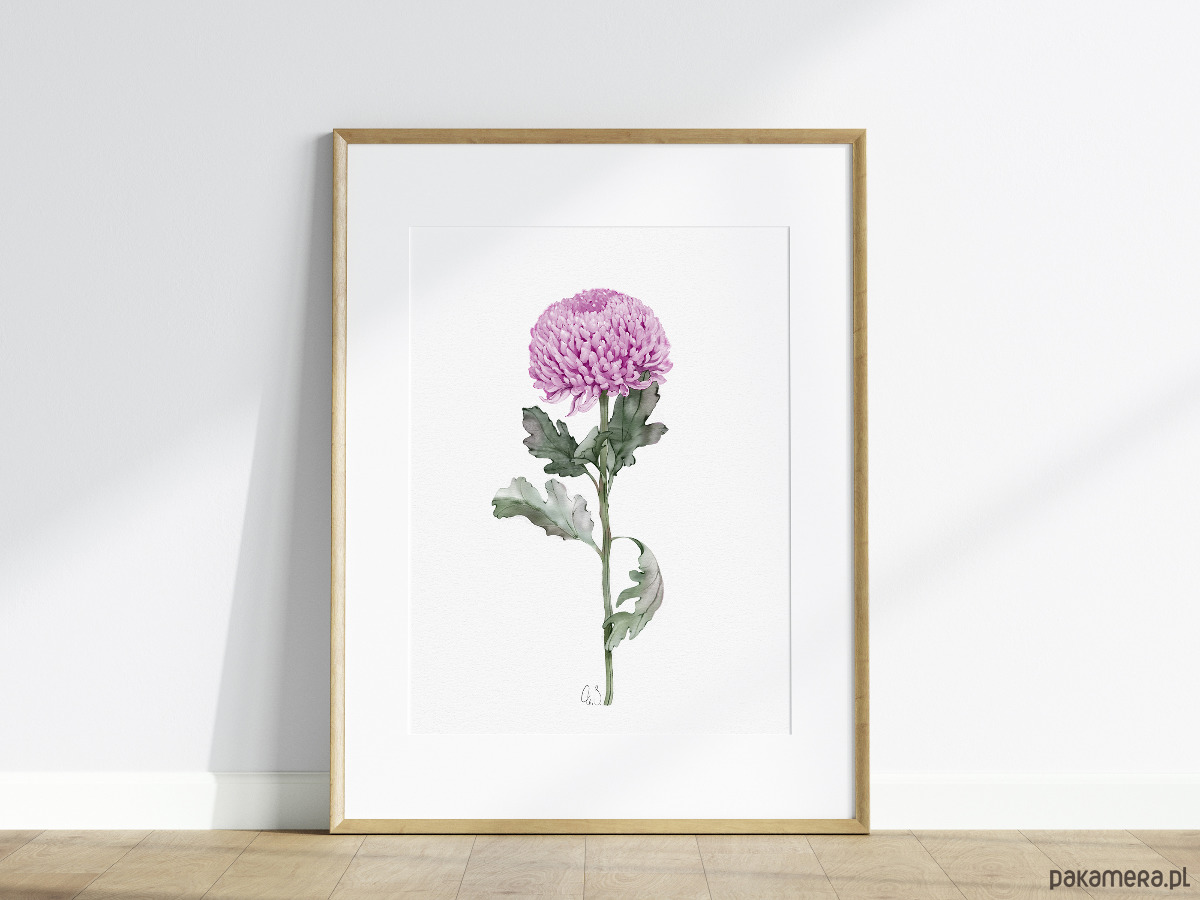 Różowa chryzantema — autorska ilustracja botaniczna.