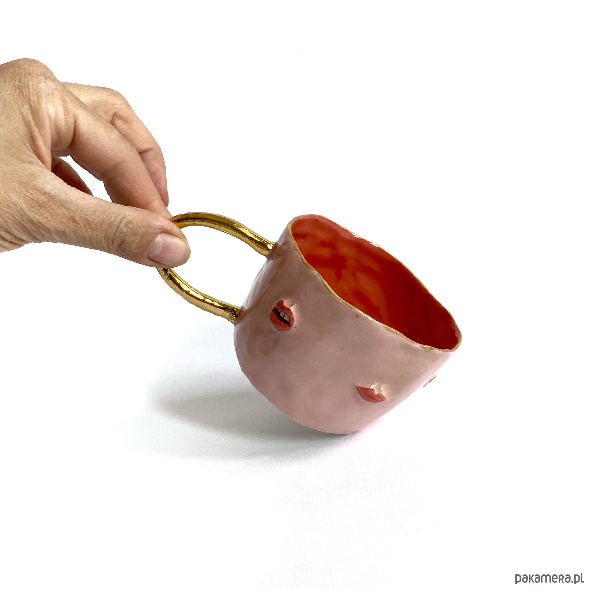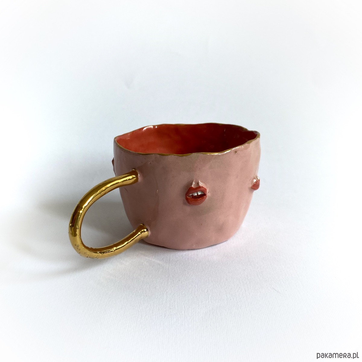 Różowa filiżanka, Kubek z ustami, Filiżanka na prezent, Czerwone usta