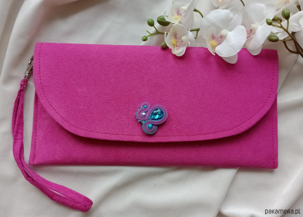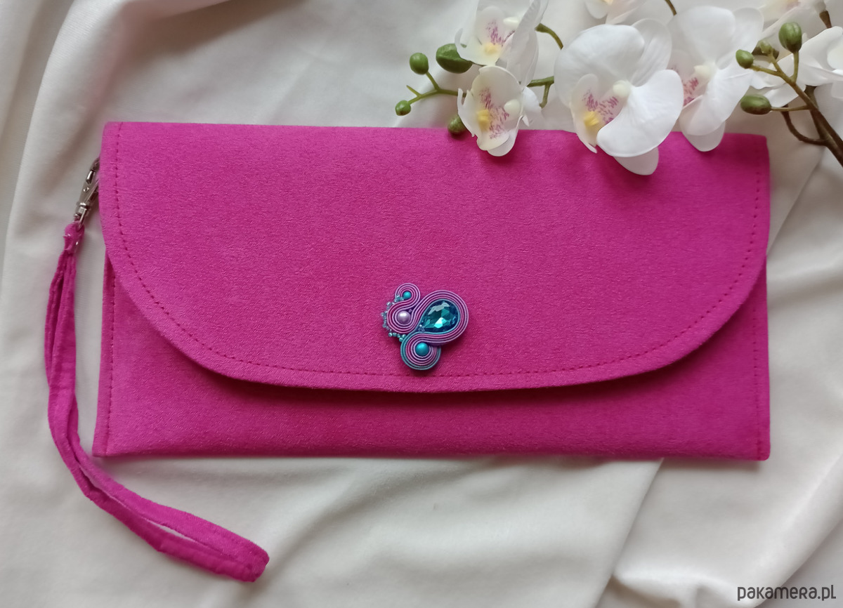 Różowa kopertówka, torebka do ręki fuksja, torebka róż turkus.