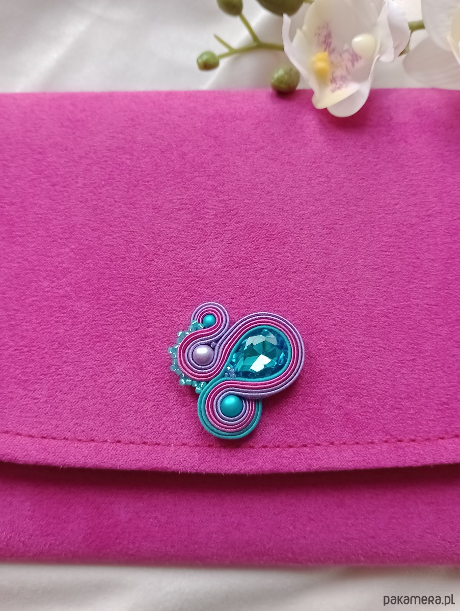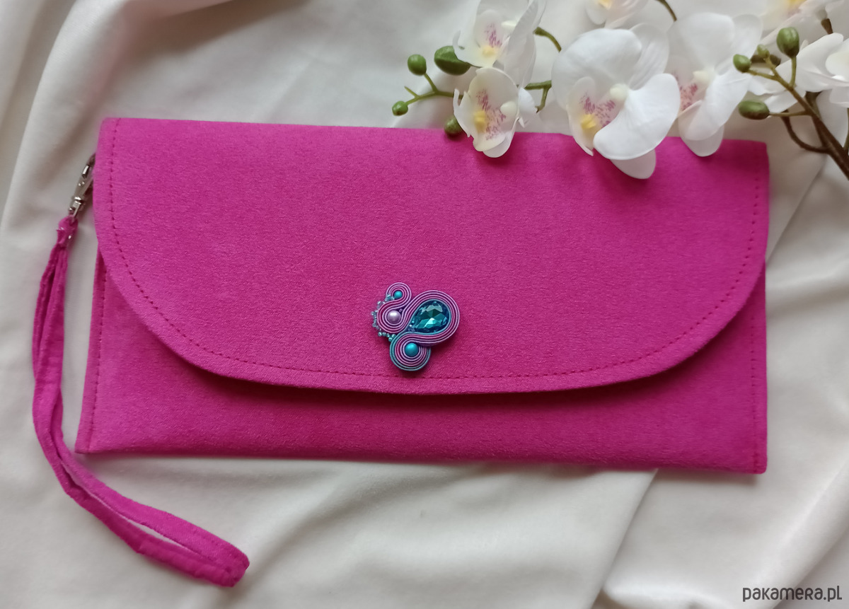 Różowa kopertówka, torebka do ręki fuksja, torebka róż turkus