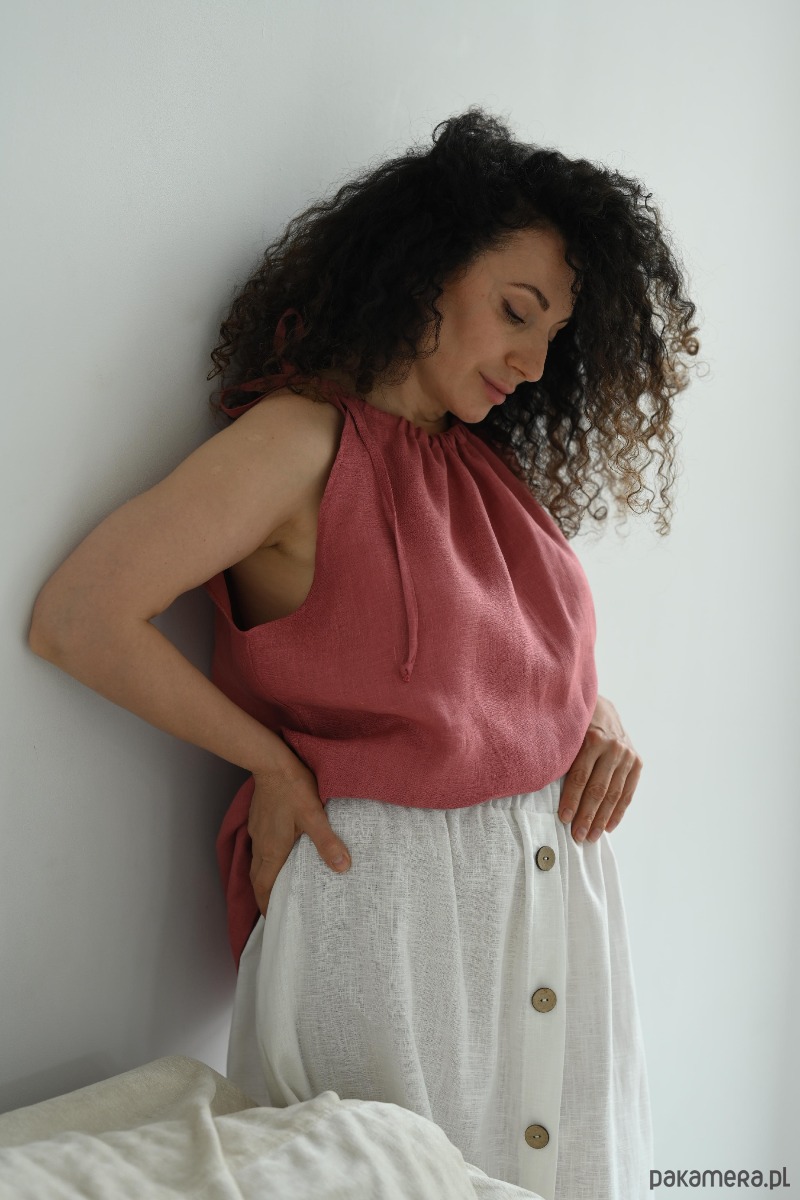Są takie ubrania, które dostosowują się do okazji i pory dnia. Jednym z nich jest lniana bluzka z wiązanymi ramiączkami, dzięki której łatwo możesz ją do siebie dopasować.