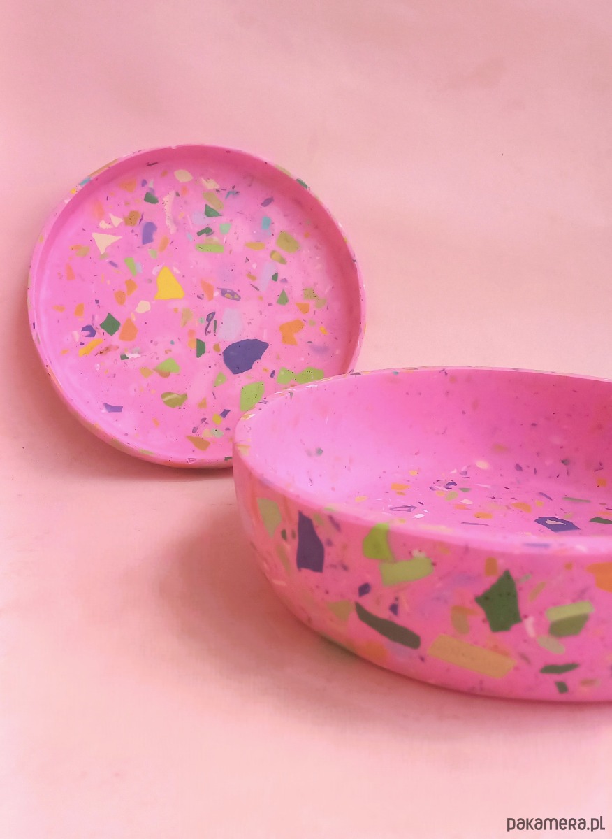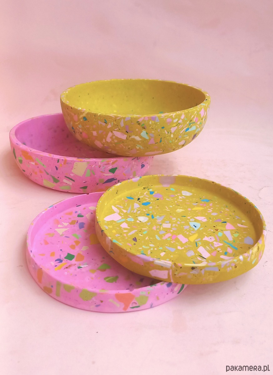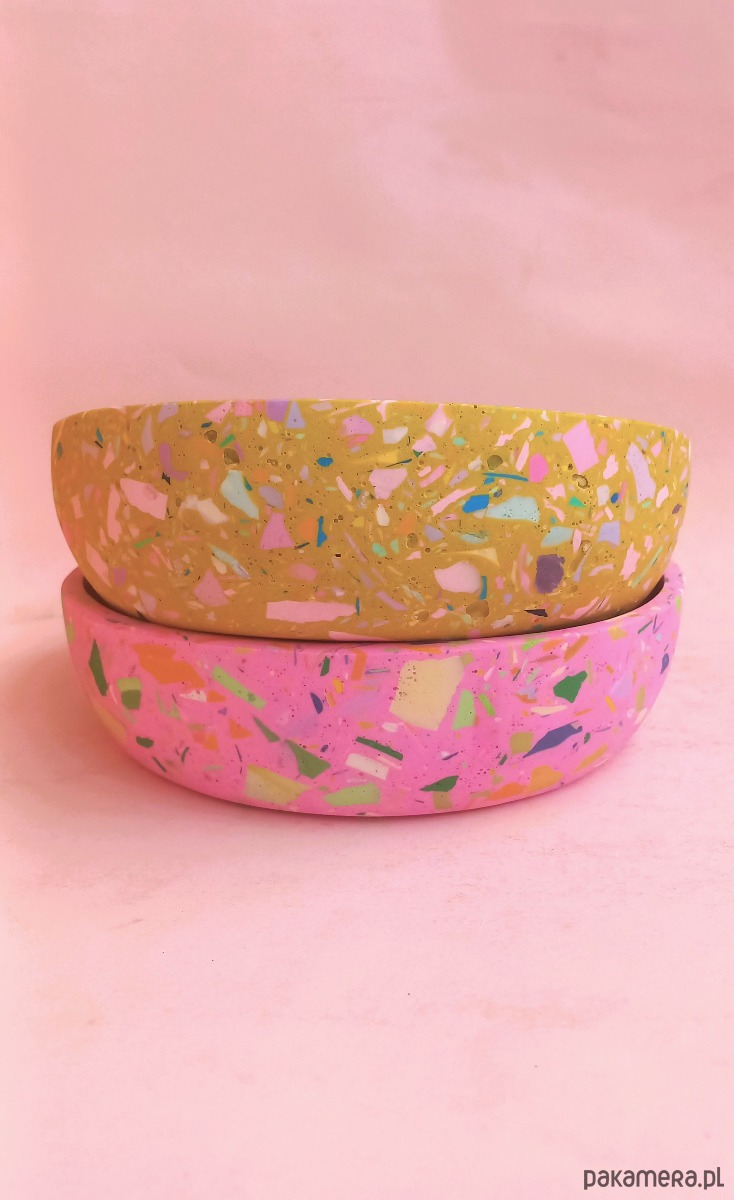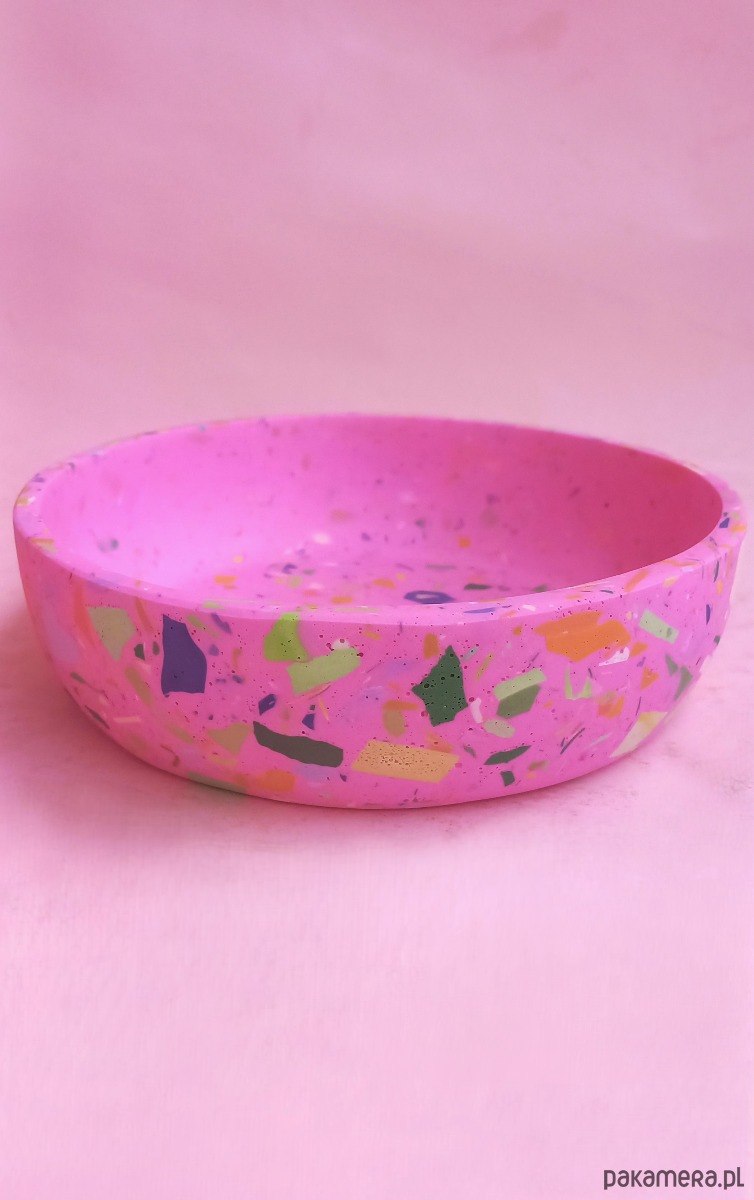 Duża misa na owoce/przekąski/dekoracje z wzorem terrazzo to idealny dodatek do każdej nowoczesnej kuchni lub salonu. Wielokolorowy, unikatowy wzór będzie przepiękną ozdobą Twojej kuchni i jadalni, która zaskoczy Twoich gości.