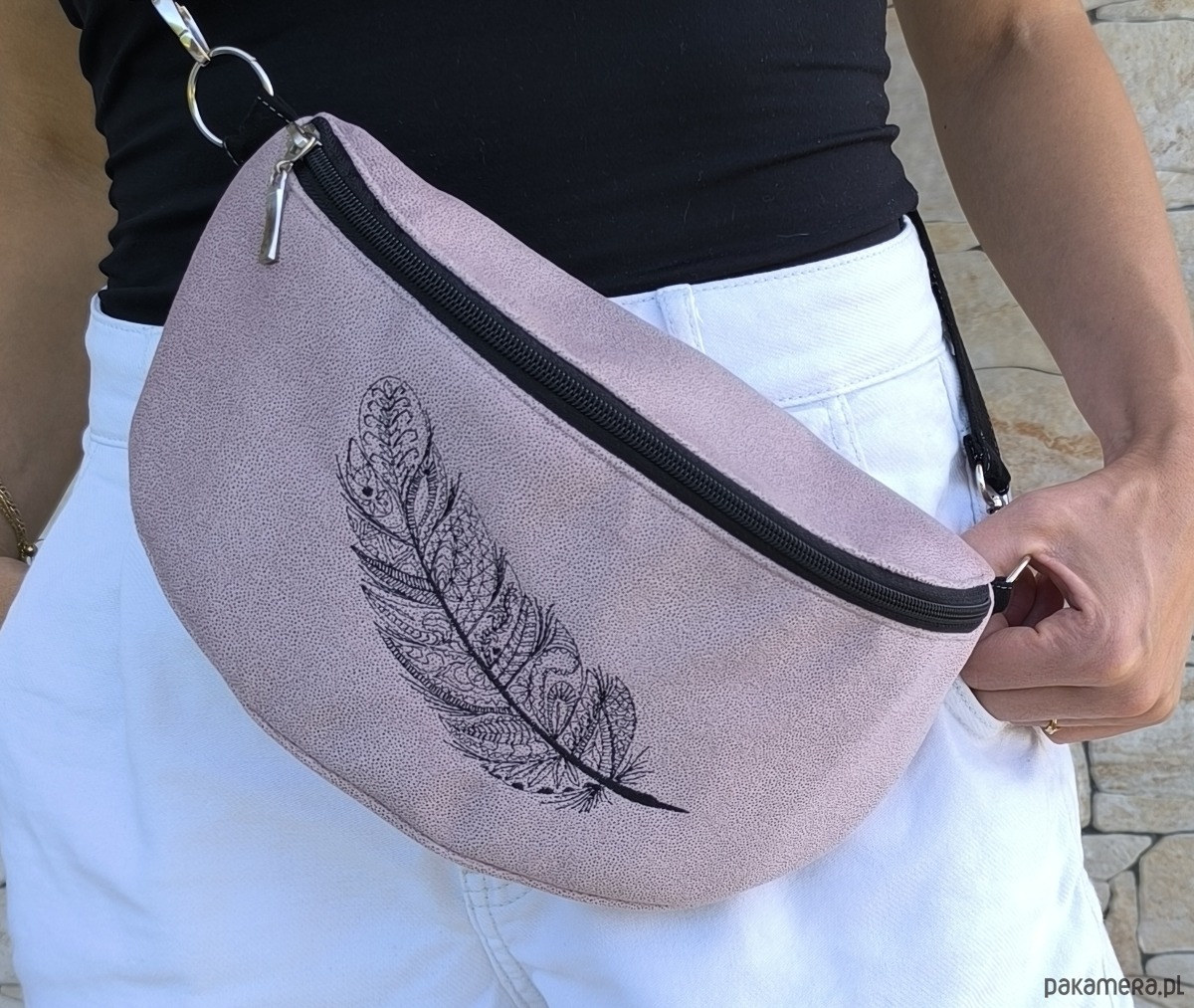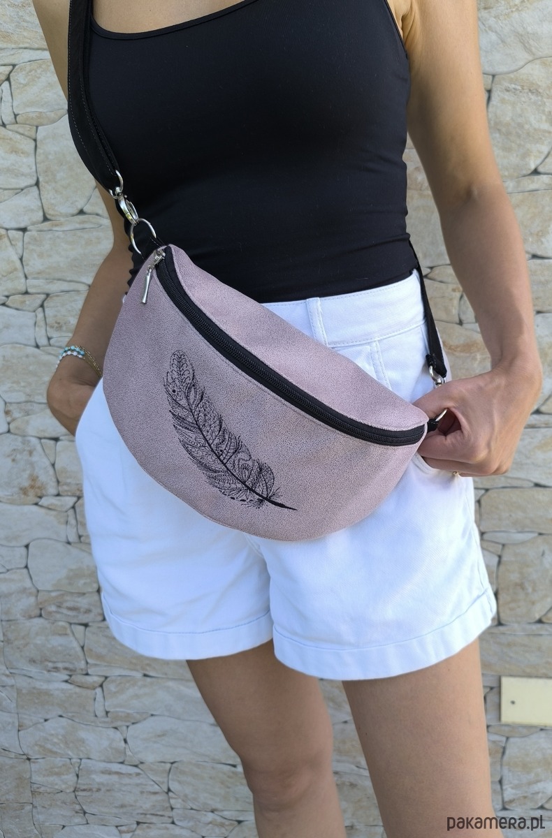 Nerka, saszetka do noszenia na ramię z regulowanym paskiem, zapinana na suwak, w środku mała kieszonka na suwak.