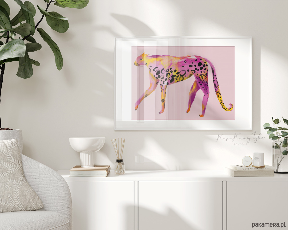Autorska grafika pt "Różowa pantera" w formacie 50x70 cm lub 70x100cm. Wydruk na wysokiej jakości papierze o gramaturze 230 gr. Grafika bez ramy Zapakowana w solidną kartonową tubę. Znak wodny nie będzie widoczny na grafice :)