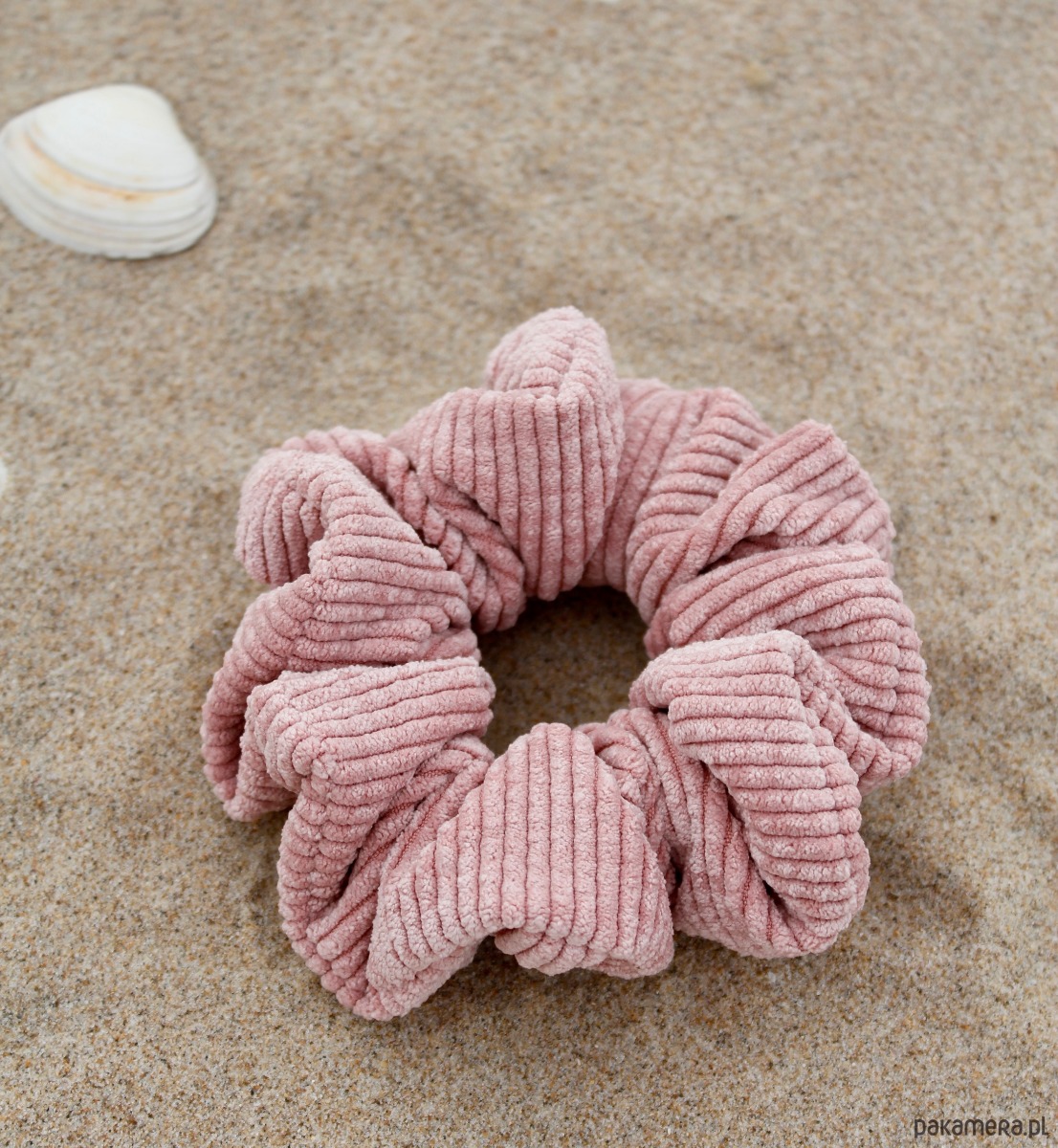 Sztruksowa scrunchie Pink w subtelnym odcieniu różu to stylowy dodatek, który doda uroku każdej stylizacji.