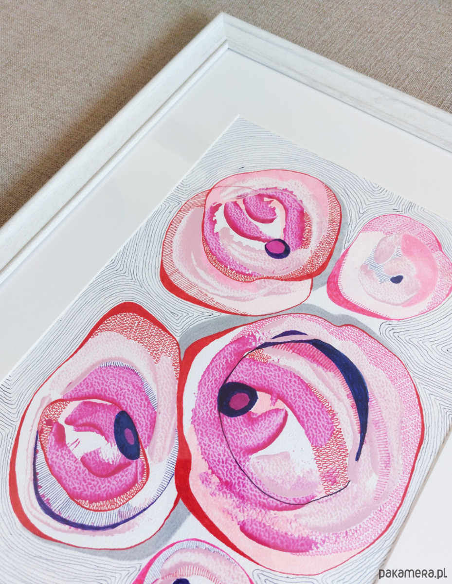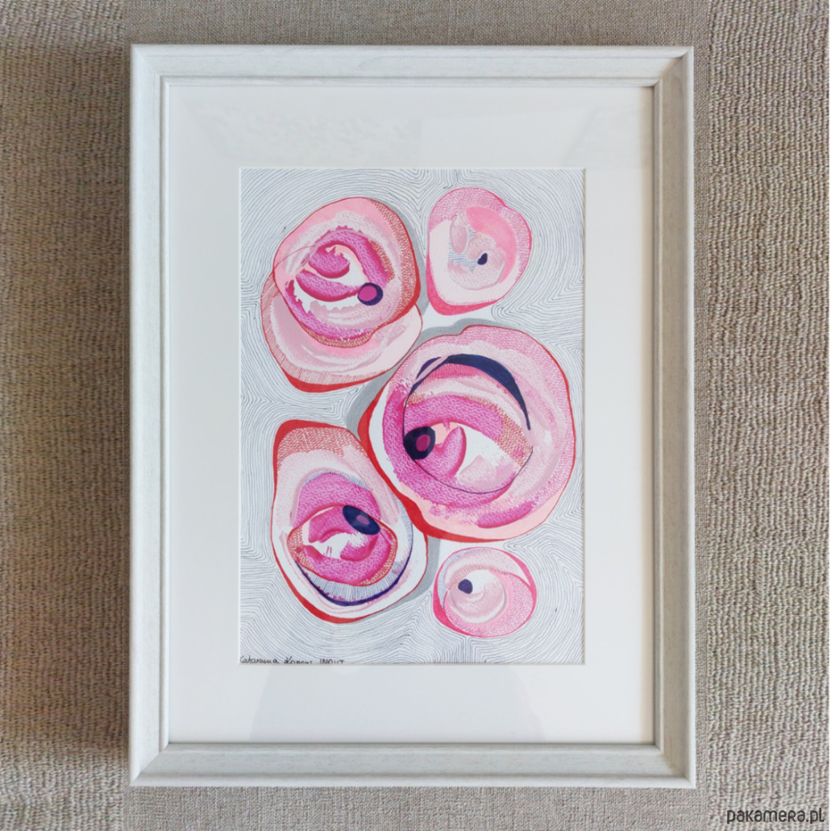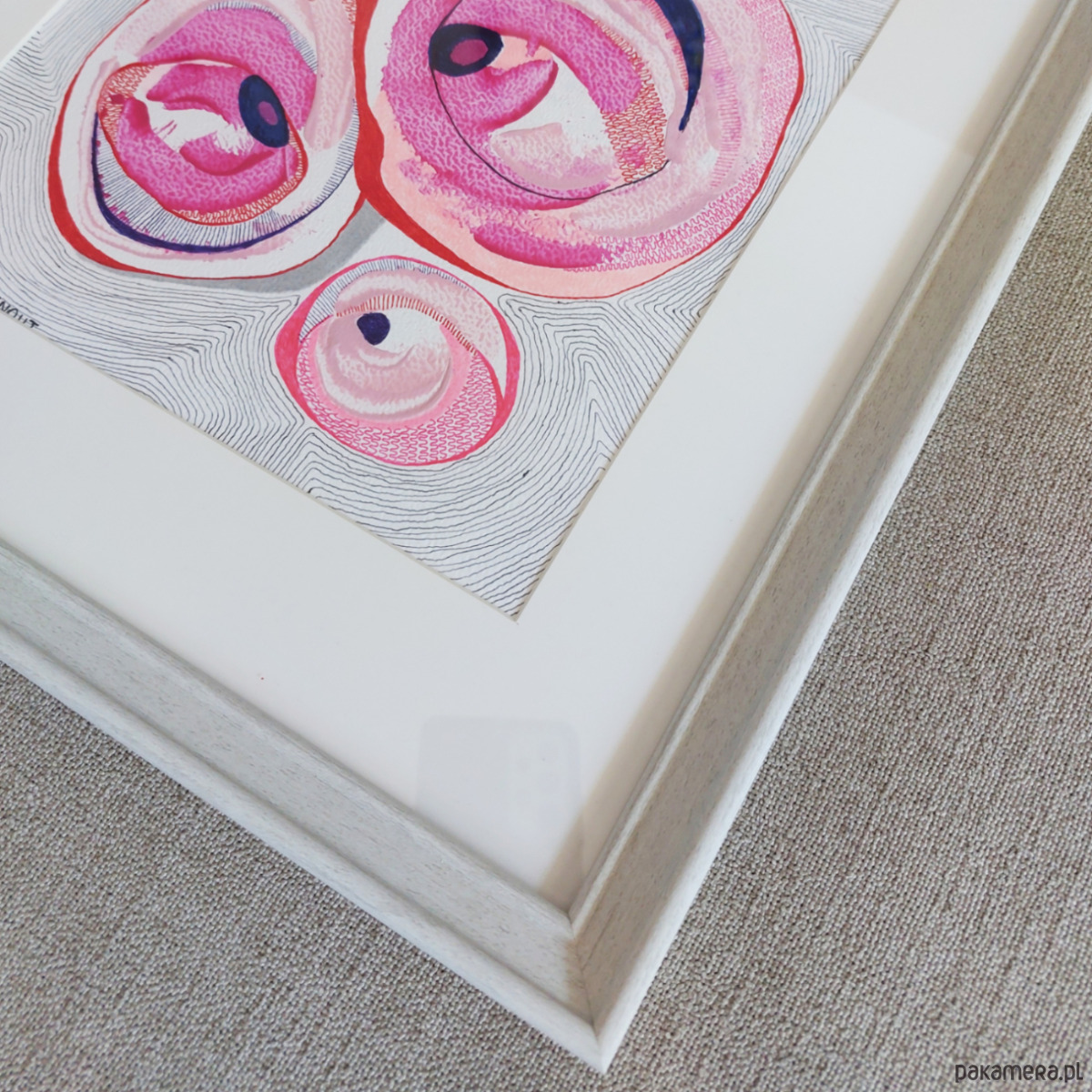 RÓŻOWE BAŃKI SZCZĘŚCIA_2 to abstrakcja pełna delikatnych odcieni różu i szarości. Świetnie sprawdzi się w pokoju dziecka, sypialni i każdej innej przestrzeni, której Mieszkańcy lubią takie barwy. Oprawiona jest w jasnoszarą, niemal białą ramę z delikatnym rysunkiem drewna. Rozświetli każdą ciemną ścianę, będzie pasować do bieli, drewna, boho, szarości, cegły czy granatów. A jeśli szukasz unikatowego prezentu - BAŃKI to idealny wybór :)