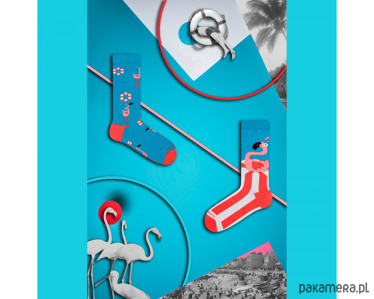 Różowe flamingi są nie tylko fascynującymi stworzeniami natury, ale również symbolem luksusu i relaksu. Właśnie taki klimat przeniesiemy Ci na nogi, dzięki naszym wyjątkowym skarpetkom nie do pary od Takapara. Wyprodukowane w Łodzi z wysokojakościowej bawełny, te skarpetki zapewnią Ci komfort i trwałość na najwyższym poziomie. Na jednej skarpetce uwieczniliśmy różowe flamingi, które grają na tle błękitnego wody, tworząc prawdziwy raj na Twoich stopach. Na drugiej skarpetce znajdziesz zaś dużego flaminga, unoszącego się na kolorowym kole plażowym. Kiedyś pewien flaming postanowił spędzić urlop na Karaibach i wsiadł do dmuchanego koła. Od tamtej pory, każdy, kto nosi te skarpetki, czuje się jak na wakacjach. Jest to idealny produkt dla osób, które cenią sobie jakość i oryginalność, a także pragną dodać odrobinę humoru do swojego codziennego stroju.