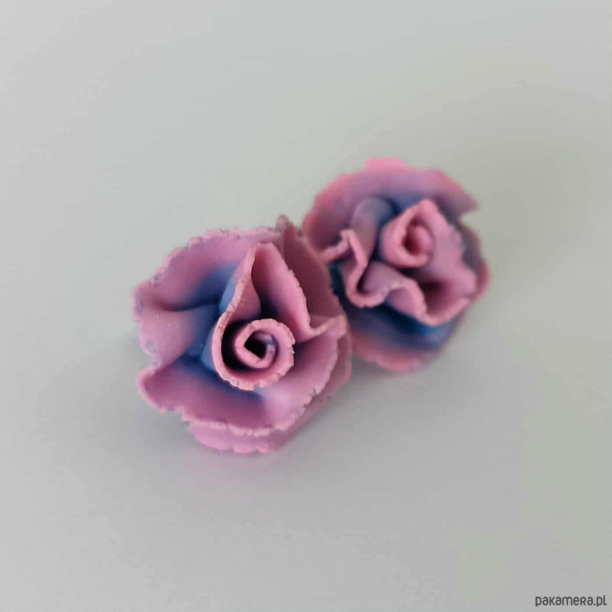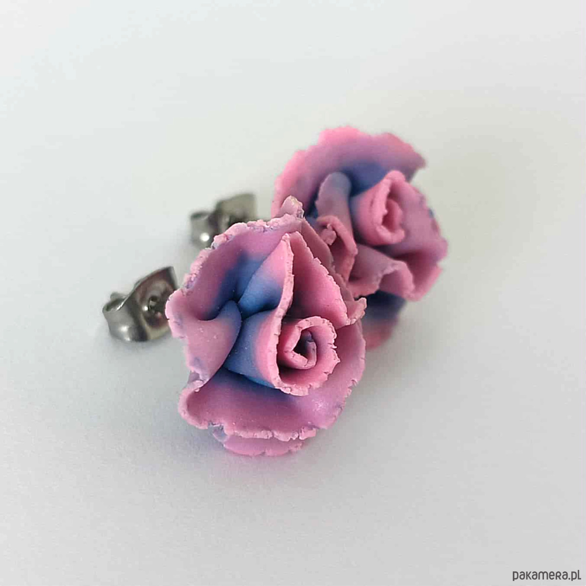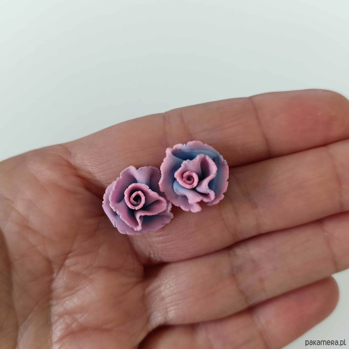 Urocze kolczyki w kształcie delikatnych różowo fioletowych różyczek, wykonane ręcznie z masy polimerowej. Każda para jest unikatowa i powstała z dbałością o najmniejsze detale. Idealne dla miłośniczek subtelnej, kwiatowej biżuterii. Lekkie i wygodne w noszeniu, doskonałe na co dzień lub jako drobny prezent.