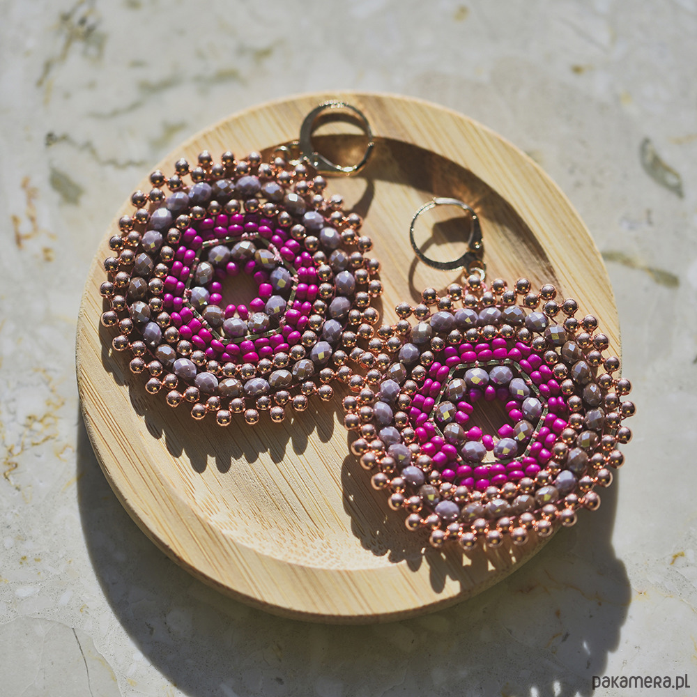 Różowe okrągłe kolczyki na bazie sześciokąta