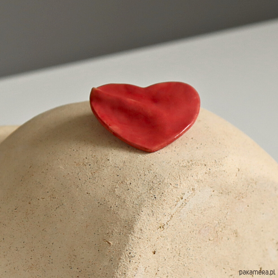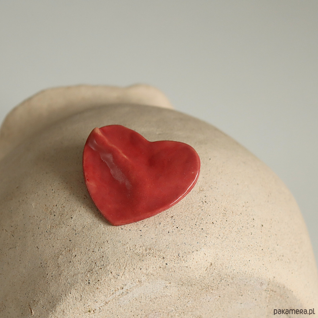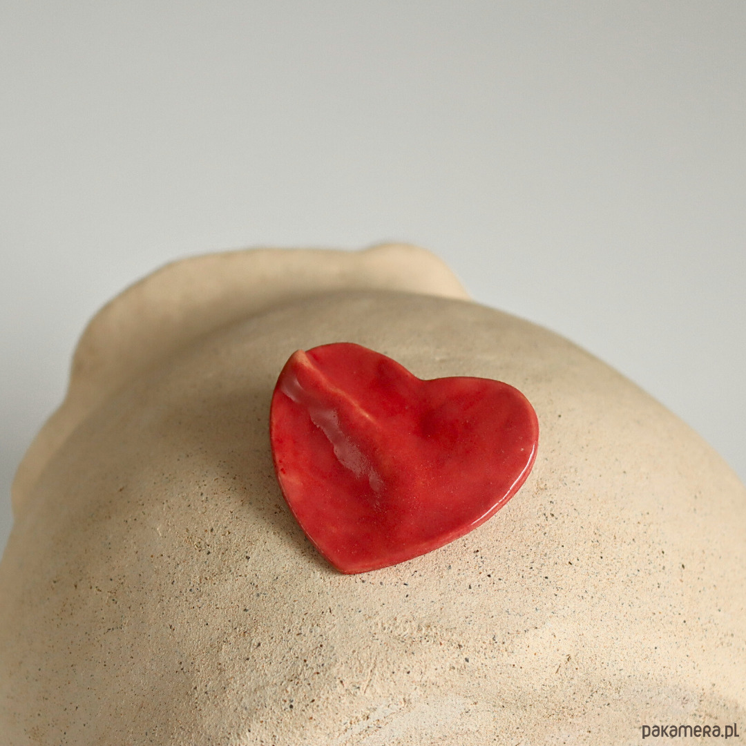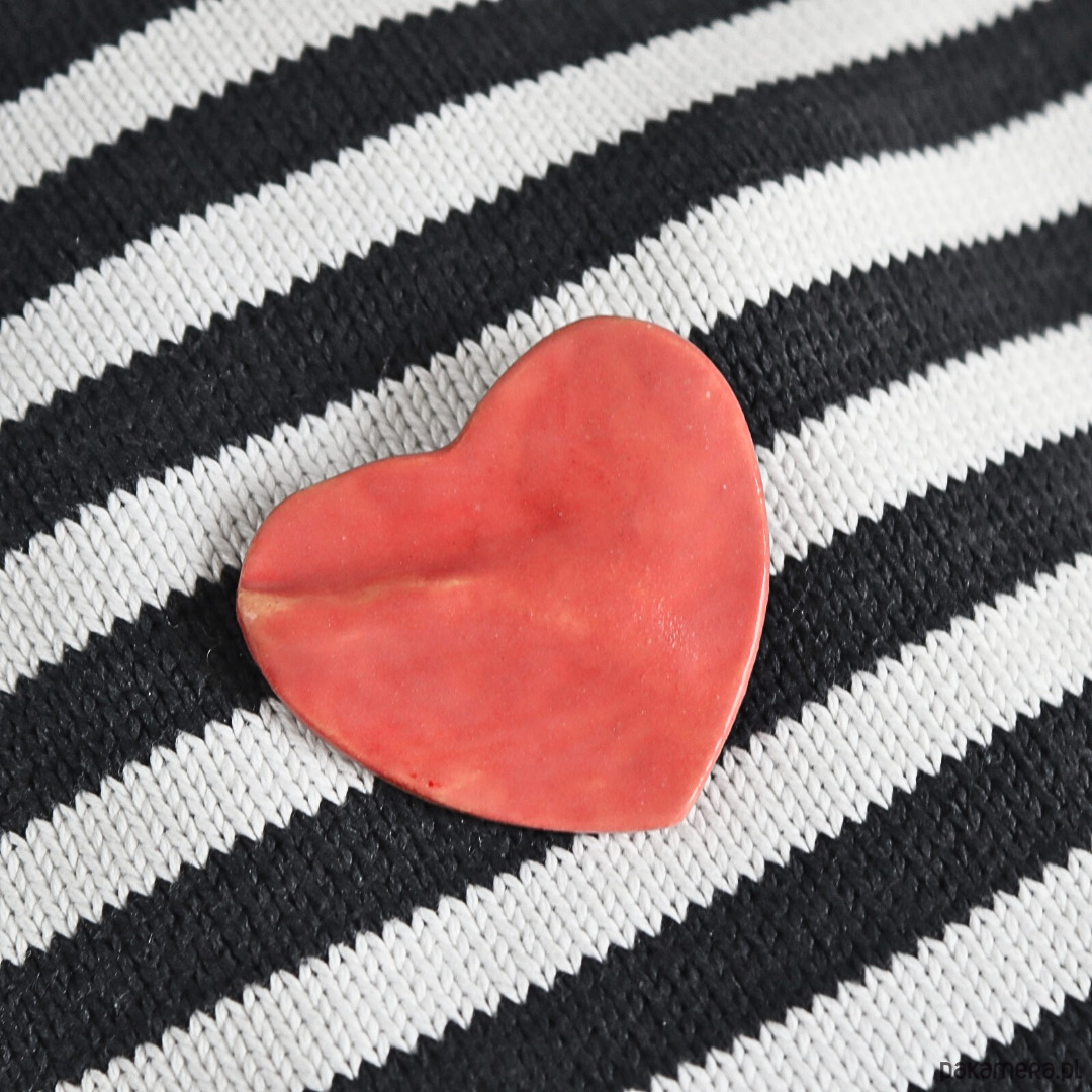 Różowe serce, ceramiczna broszka