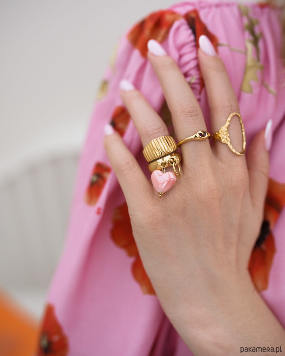Lubisz biżuterię, która ma charakter? Ten wyjątkowy złoty pierścionek ze stali chirurgicznej to propozycja dla kobiet, które nie boją się wyróżniać. Minimalistyczna obrączka została uzupełniona o oryginalny detal w formie zawieszki do wyboru.Szczegóły:Rozmiar: 11 (średnica 16 mm).Przy składaniu zamówienia wybierz jedną zawieszkę, która zostanie dołączona do pierścionka. Chcesz więcej niż jedną zawieszkę? Dodaj do koszyka dodatkowe zawieszki.
