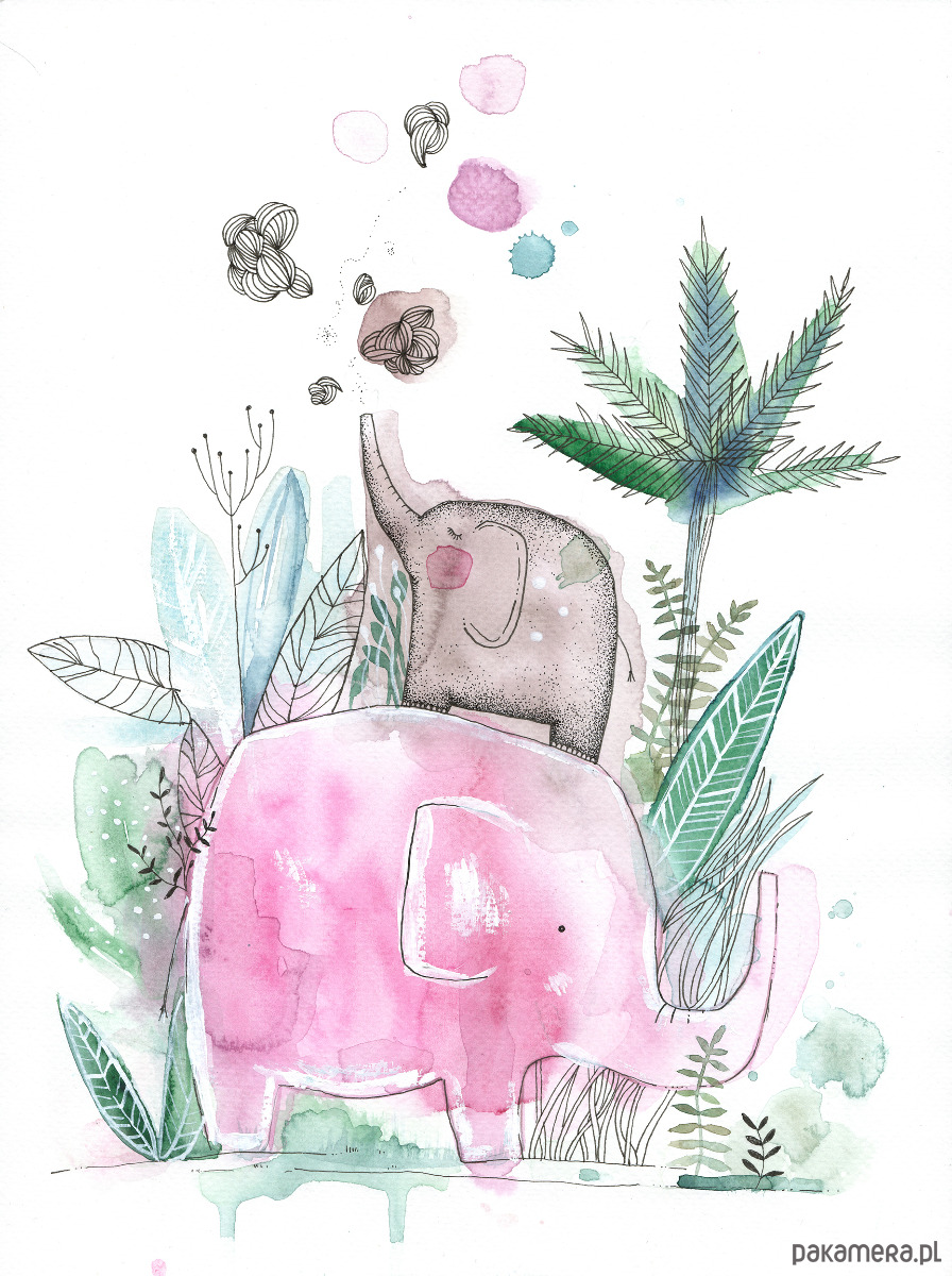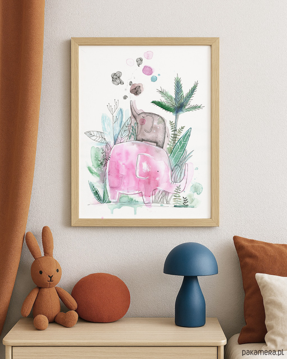 Różowe Słonie, 30x40 cm