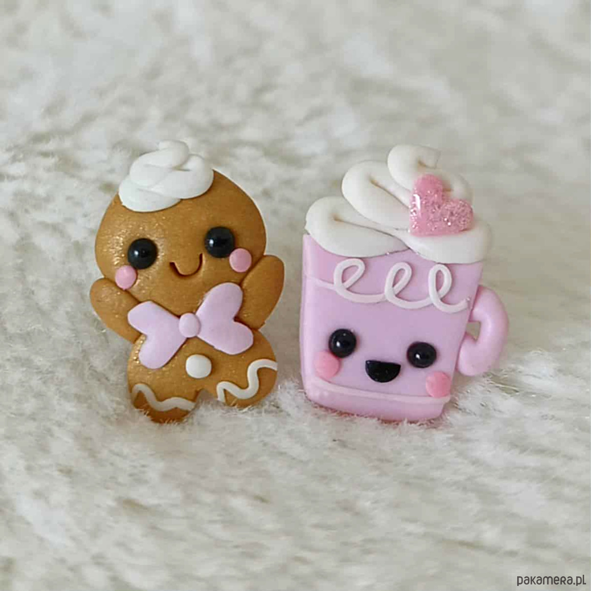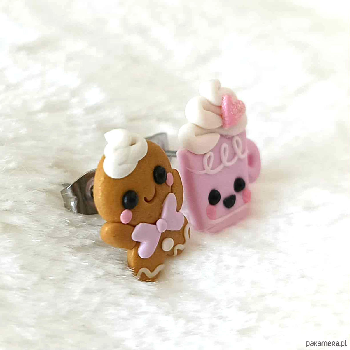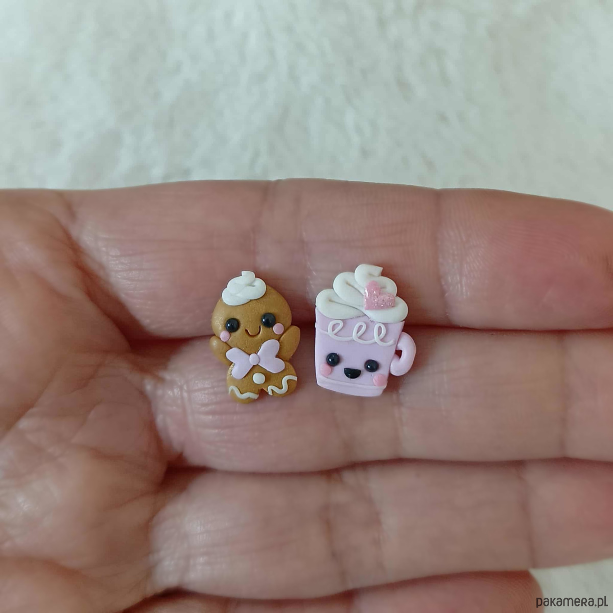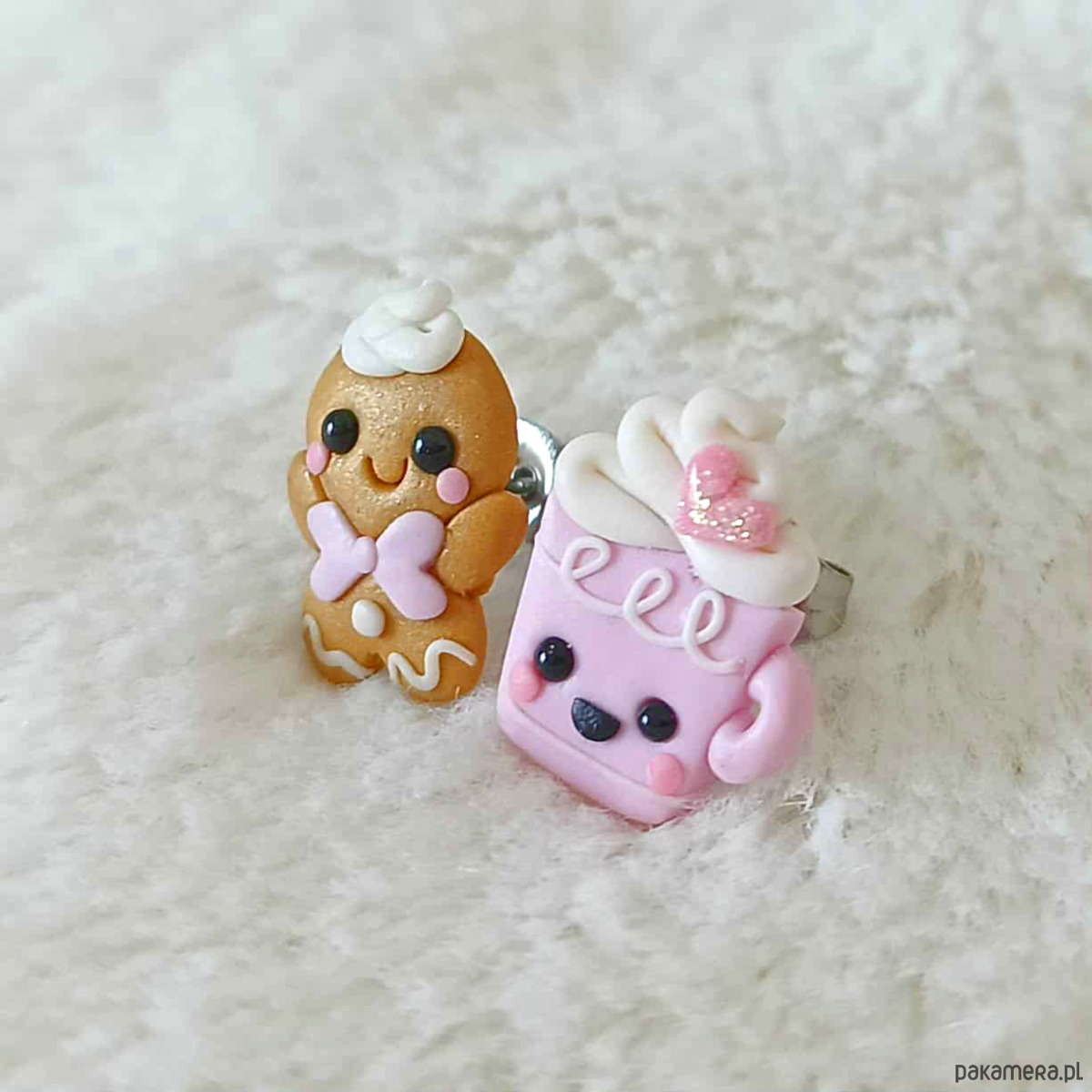 Kolczyki w kształcie wesołego pierniczka i różowego kubeczka to idealny dodatek dla miłośniczek słodkich, oryginalnych ozdób.
