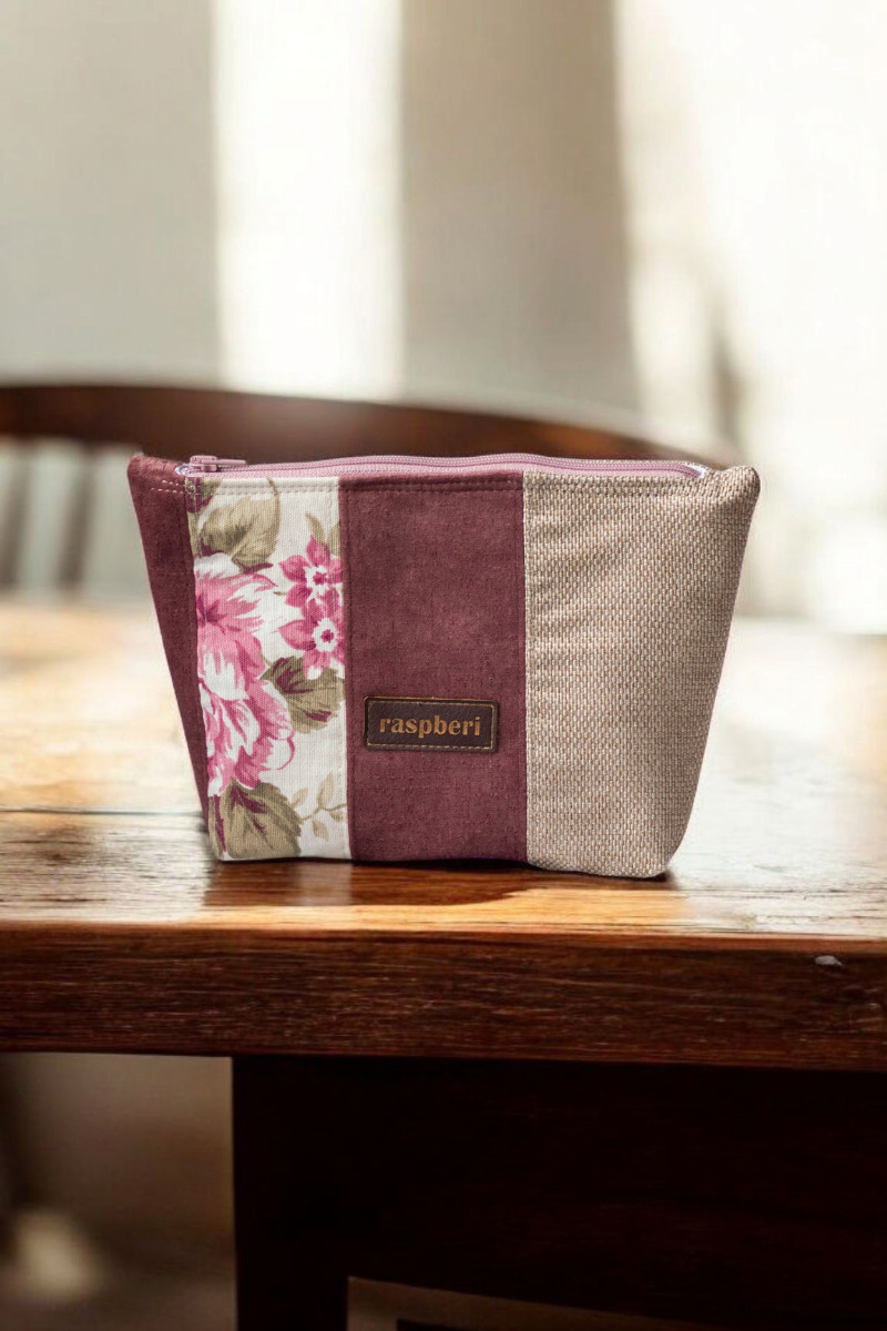 Duża kosmetyczka wykonana w duchu no waste z resztek tkanin.
