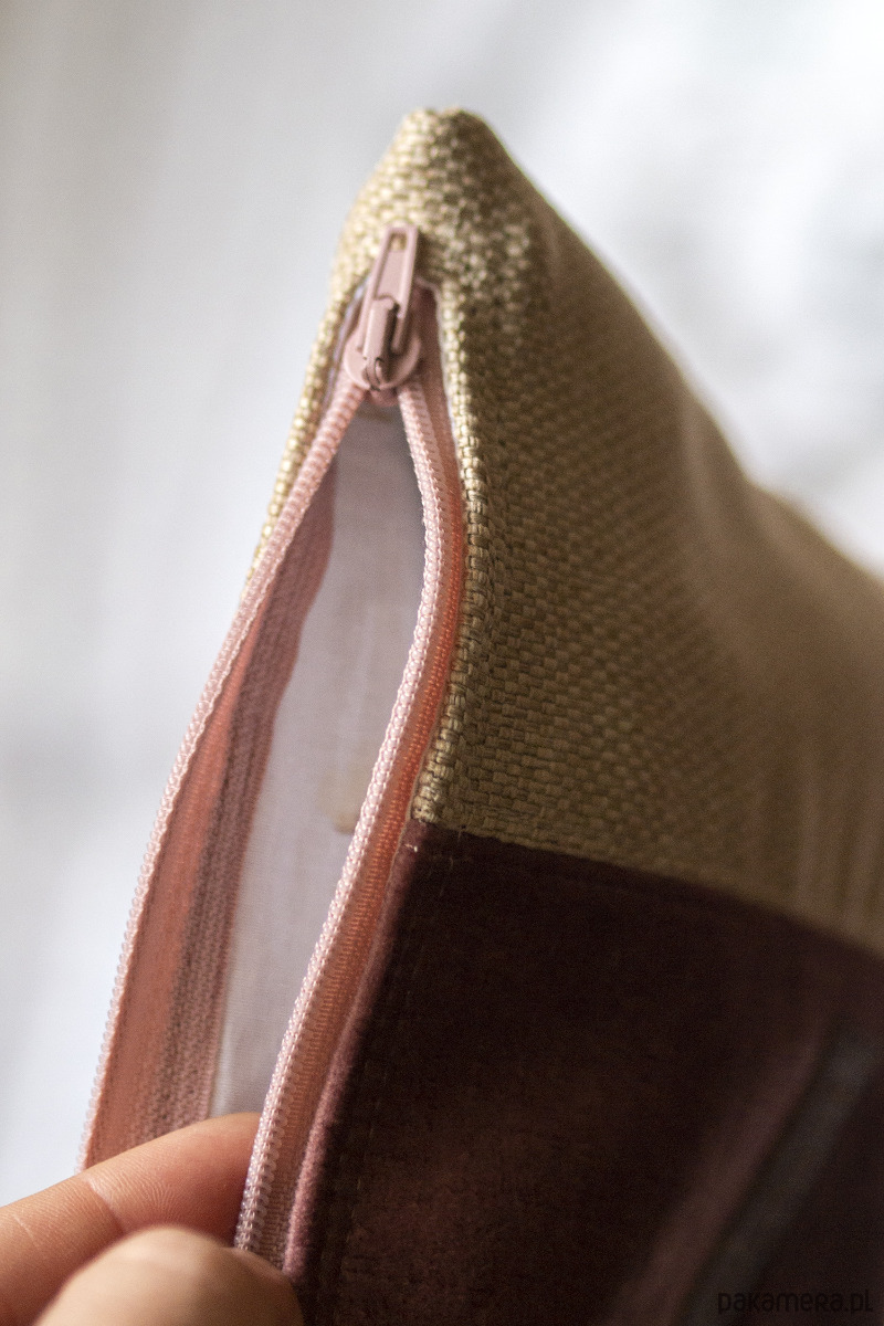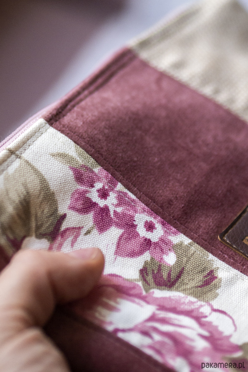 Kosmetyczka jest zapinana na suwak, w środku bawełniana podszewka.