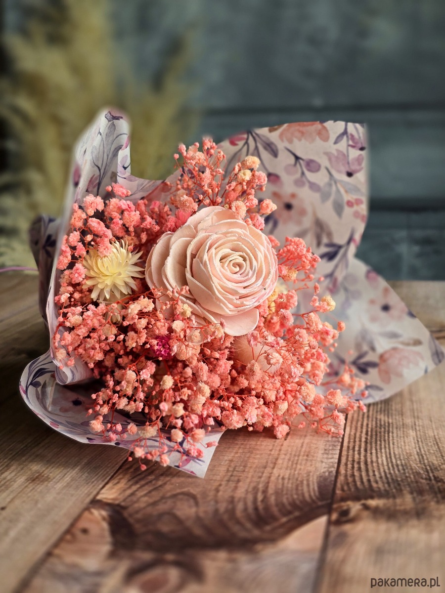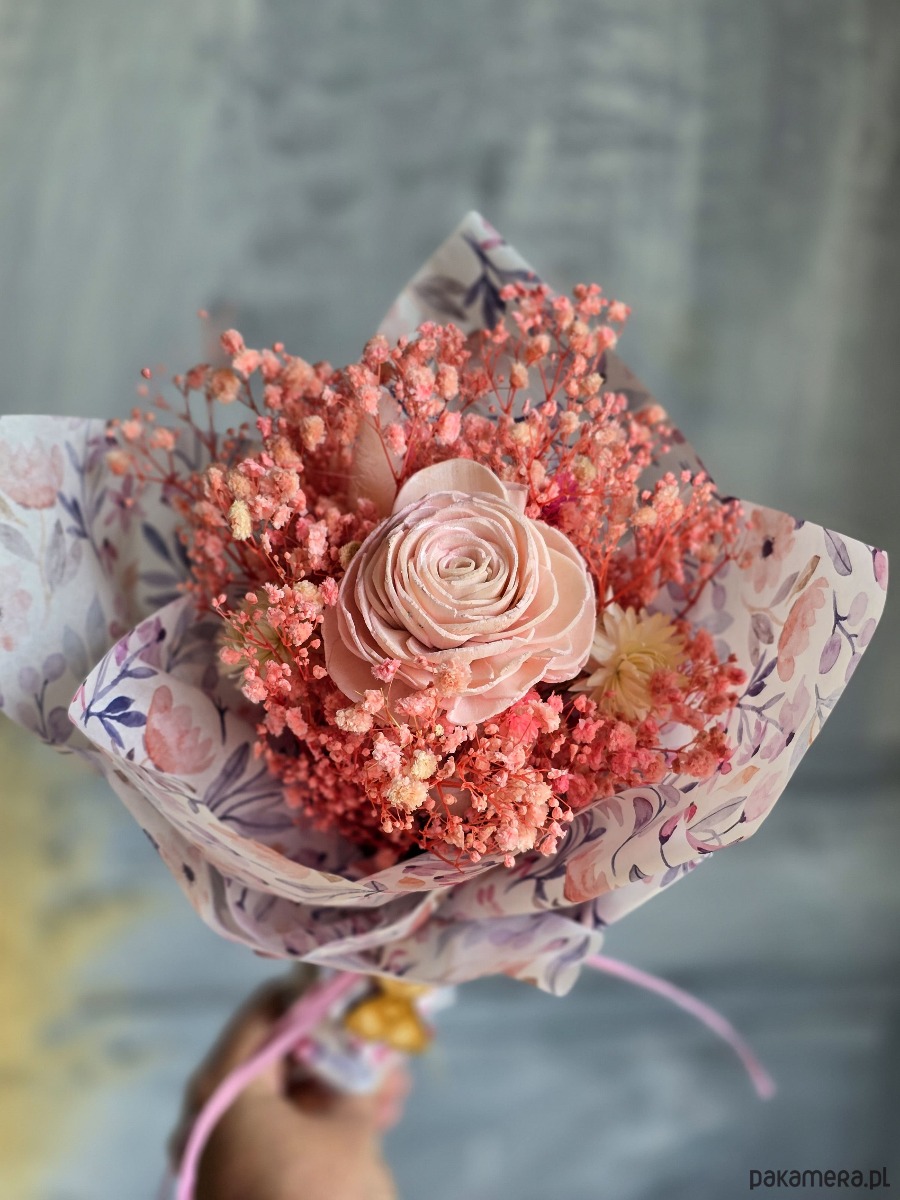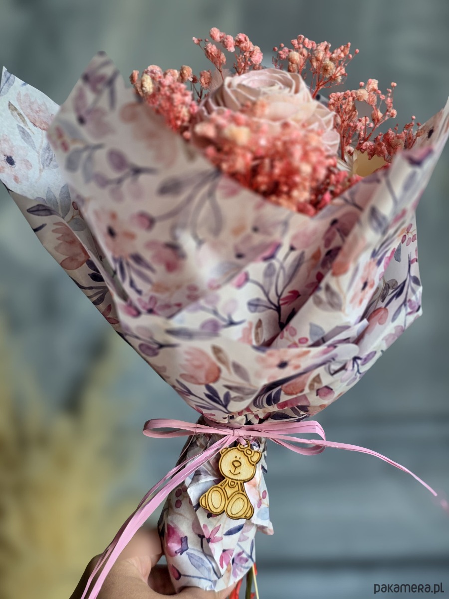 - Trwałość: bukiet z suszonych i stabilizowanych kwiatów nie zwiędnie, dzięki czemu będzie cieszył oko przez długi czas, a dziecko nie poczuje rozczarowania,