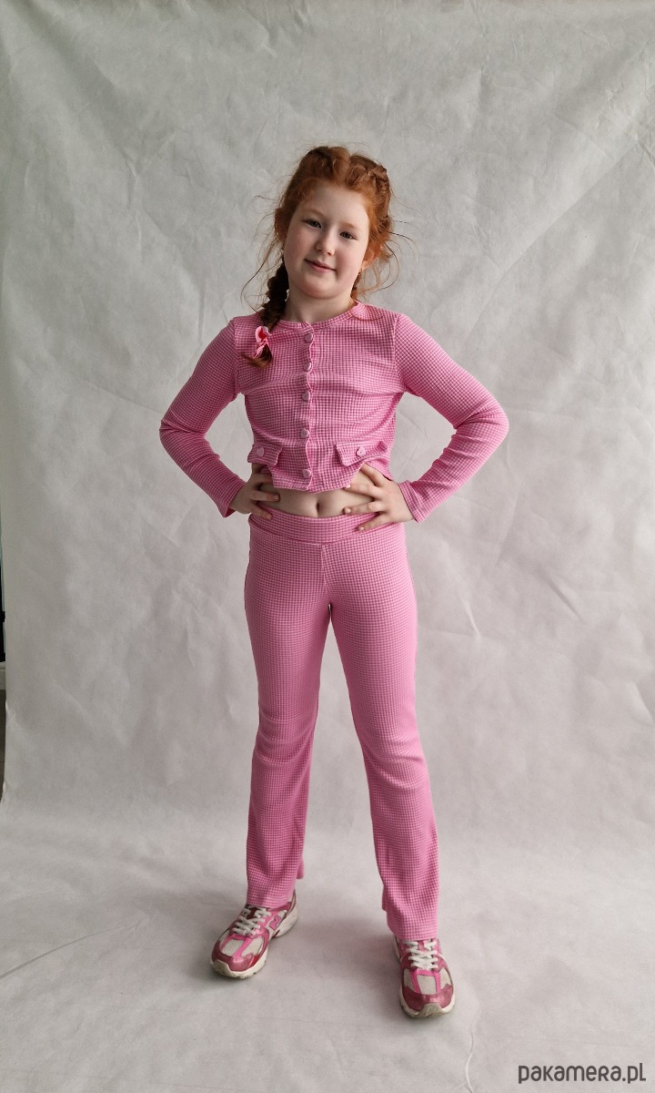Różowy komplecik: kardigan i legginsy