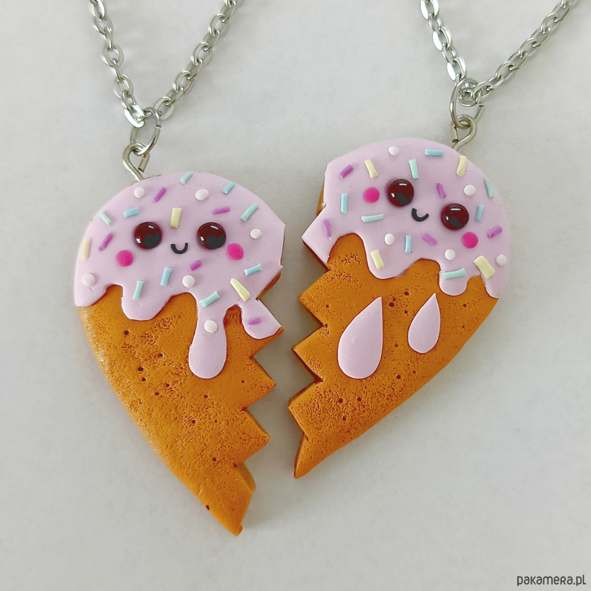Świętuj słodką przyjaźń z tymi uroczymi naszyjnikami w kształcie dwóch połówek serduszka – to idealny prezent BFF dla dziewczyn, które trzymają się razem jak posypka i lukier!