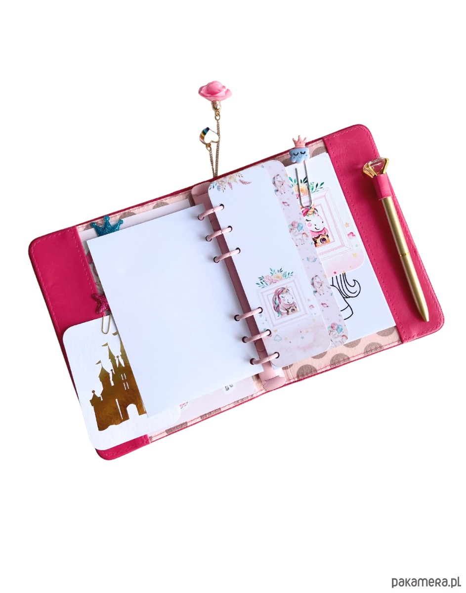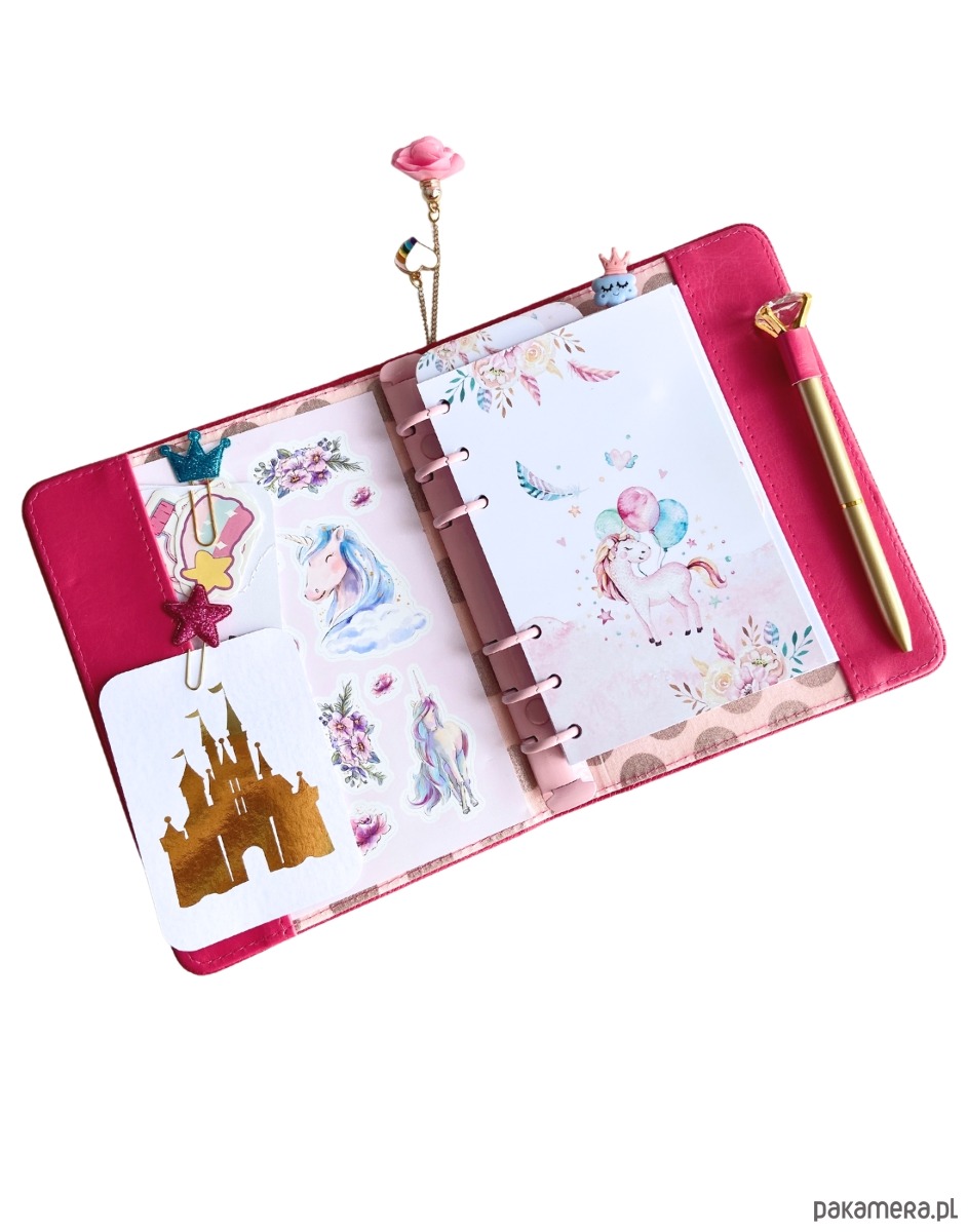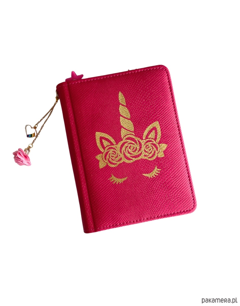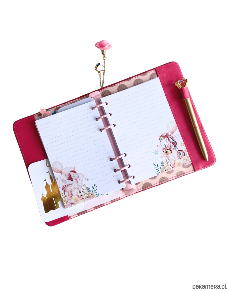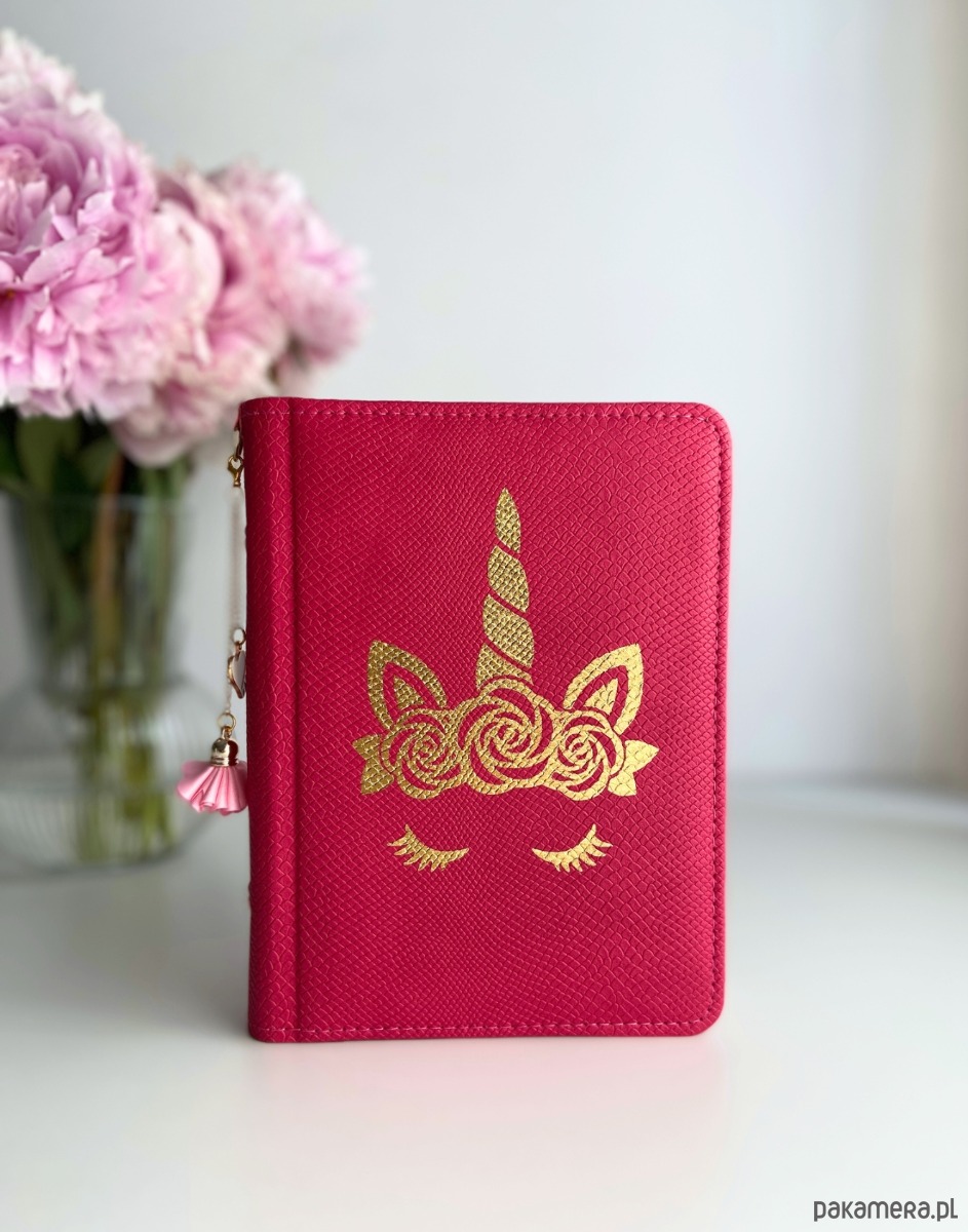 Malinowy notes A6 Róże & Jednorożec