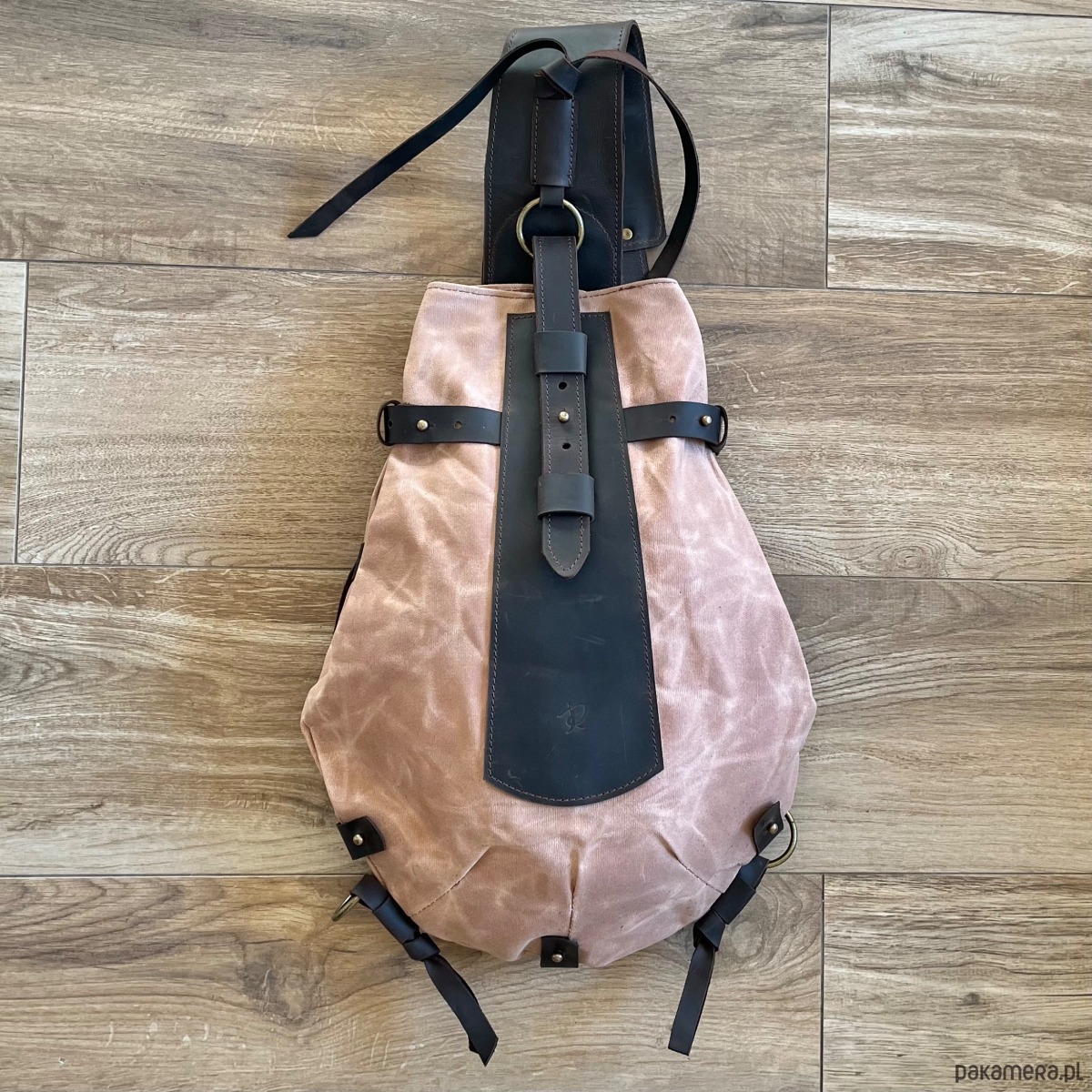 Czy marzysz o plecaku, który łączy historyczny urok z praktycznością? Ten różowo-brązowy bukłak to prawdziwe arcydzieło rzemieślnicze, inspirowane tradycyjnymi pojemnikami na wodę. Wykonany z woskowanej bawełny Wax Cotton i skóry Crazy Horse, stanie się Twoim wiernym towarzyszem podróży.