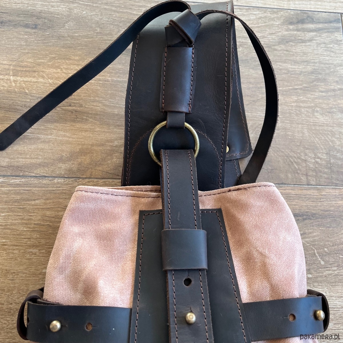 Różowy plecak Bukłak ze skóry i bawełny woskowanej Vintage.